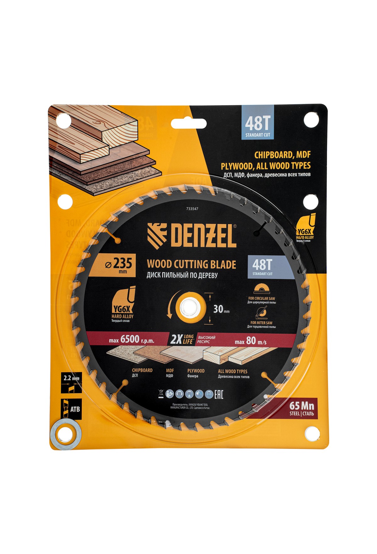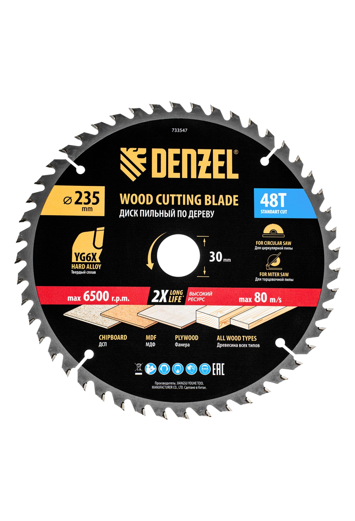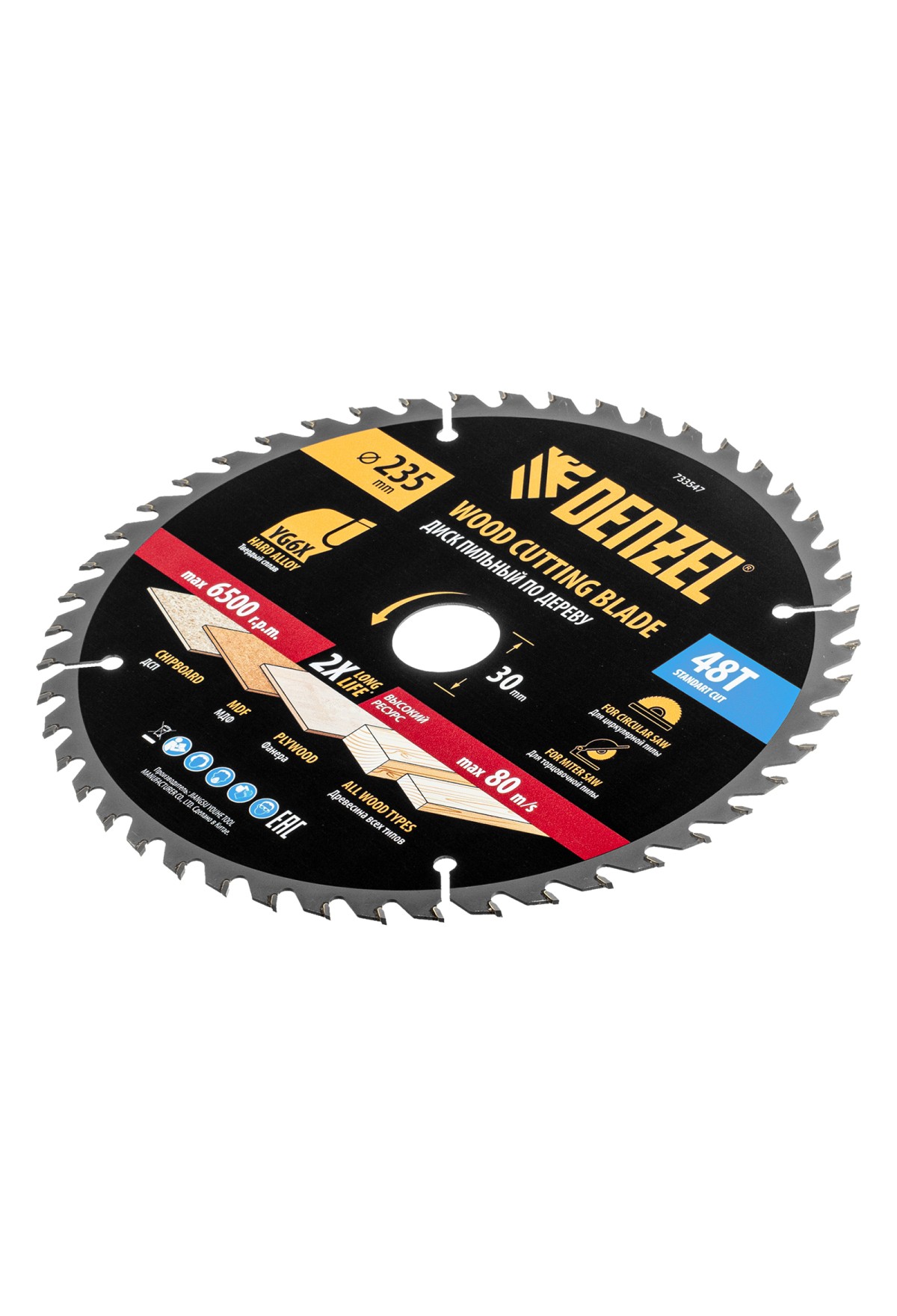 Пильный диск по дереву ф235 х 30 мм, 48 зубьев Denzel