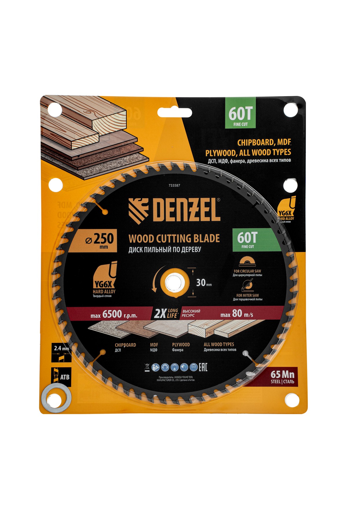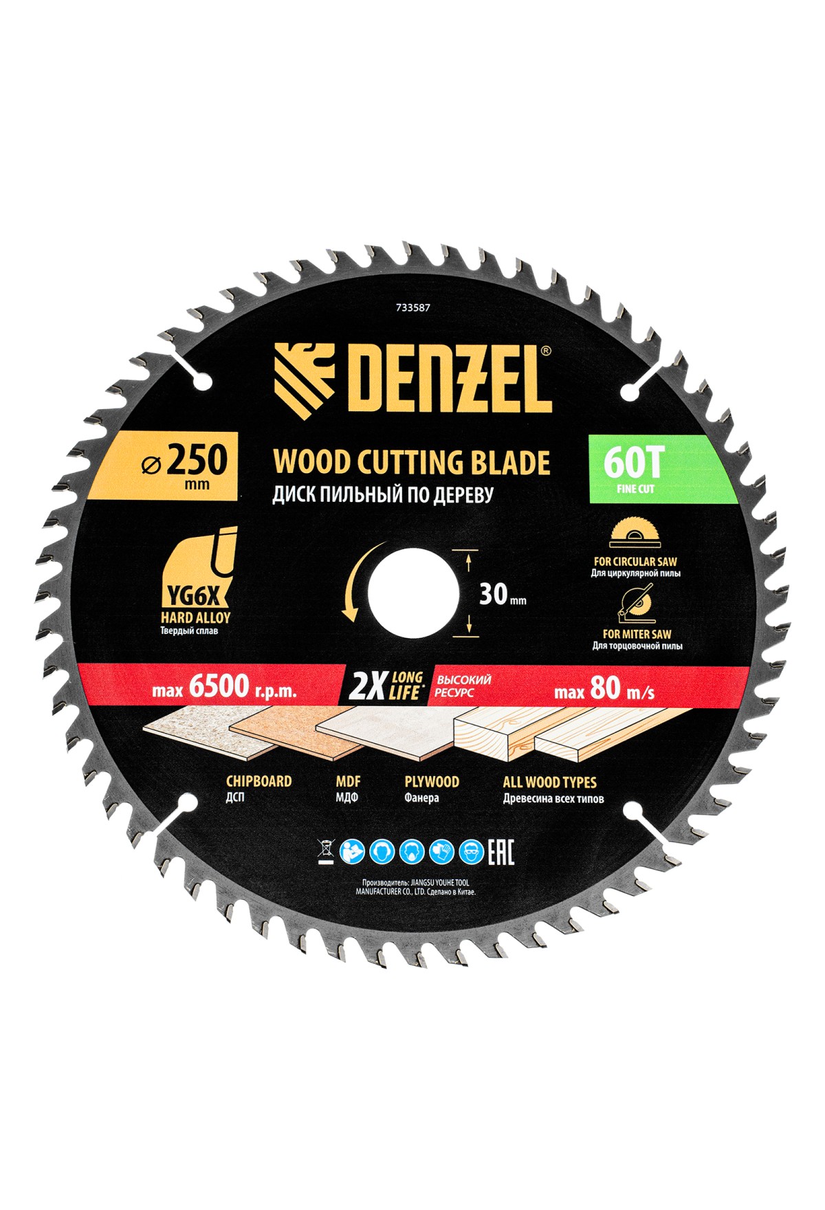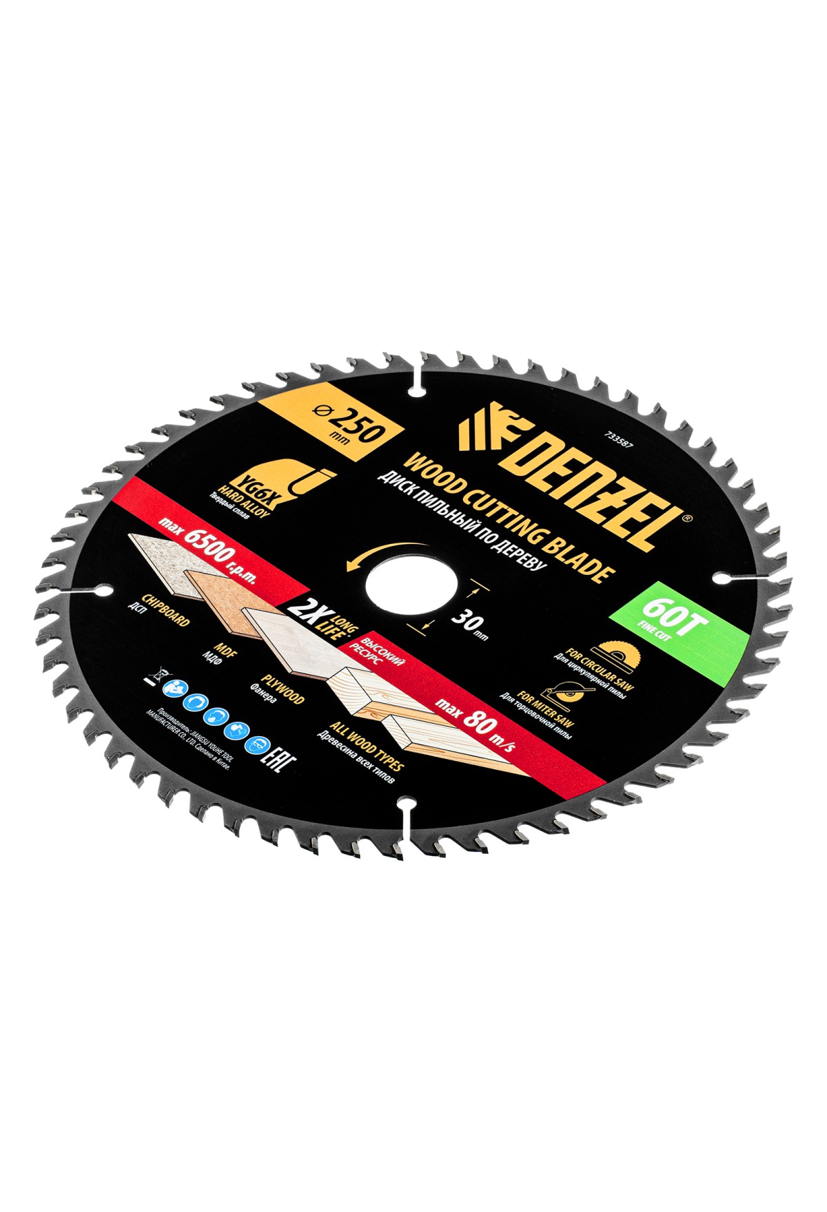 Пильный диск по дереву ф250 х 30 мм, 60 зубьев Denzel