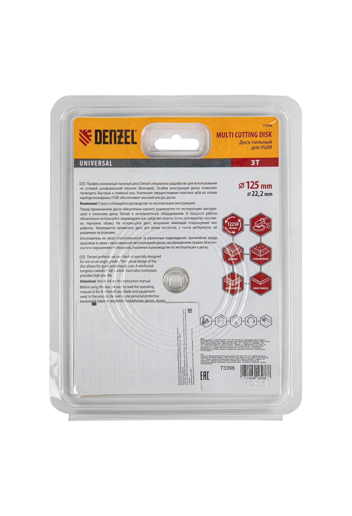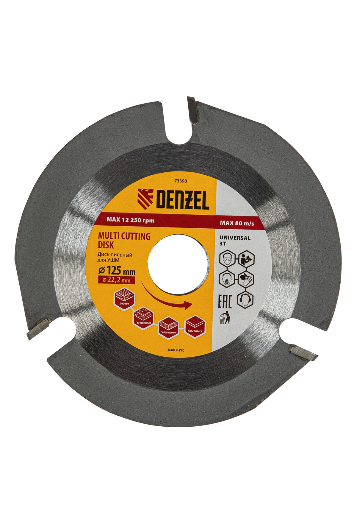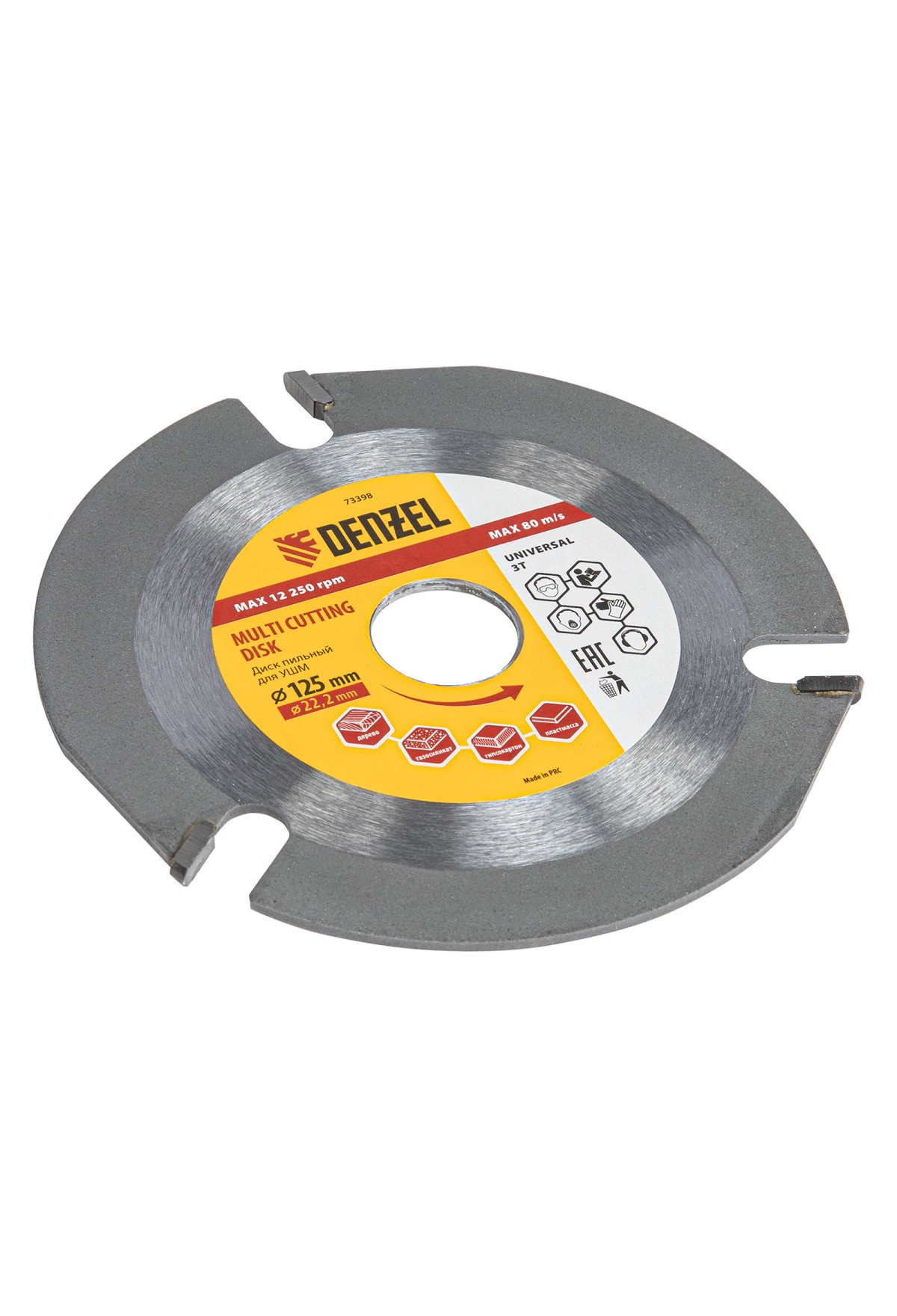 Пильный диск для УШМ Denzel Мультирез 73398 диаметром 125 х 22,2 мм, — оснастка для углошлифовальных машин, позволяющая быстро распилить древесину, тонкий пластик, гипсокартон и газосиликат. Будет полезен как профессиональному мастеру, так и домашнему умельцу. Перед эксплуатацией необходимо изучить инструкцию как диска, так и углошлифовальной машины.
