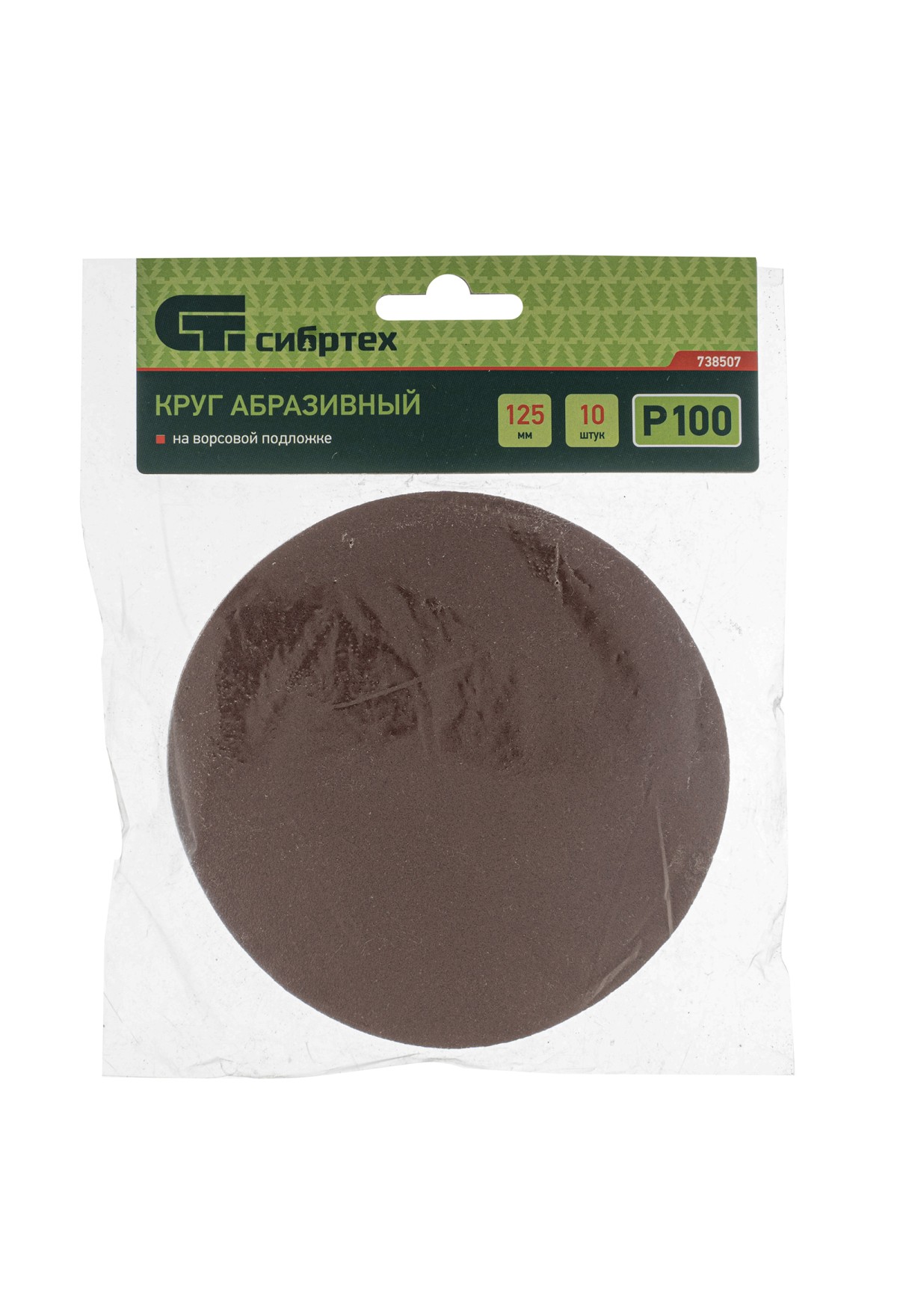 Технические характеристики Круг абразивный на ворсовой подложке под "липучку", P 100, 125 мм, 10 шт Сибртех