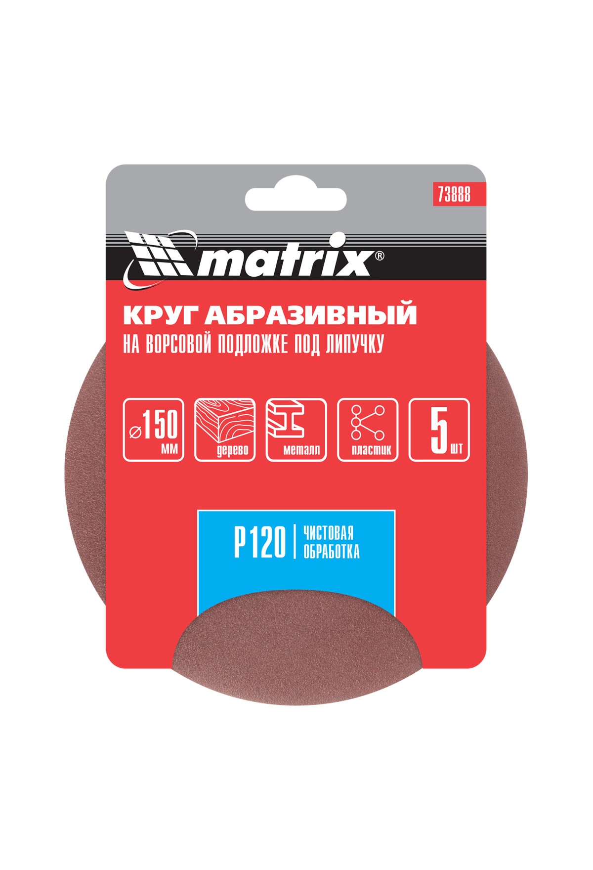 Круг абразивный на ворсовой подложке под "липучку", P 120, 150 мм, 5 шт Matrix