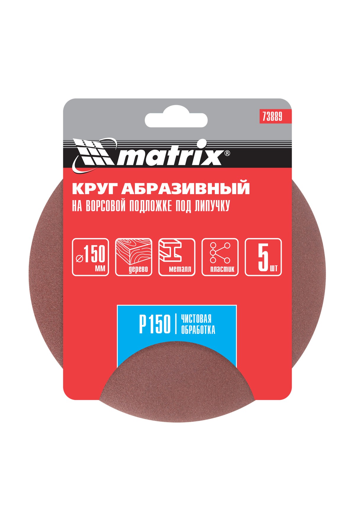 Круг абразивный на ворсовой подложке под "липучку", P 150, 150 мм, 5 шт Matrix