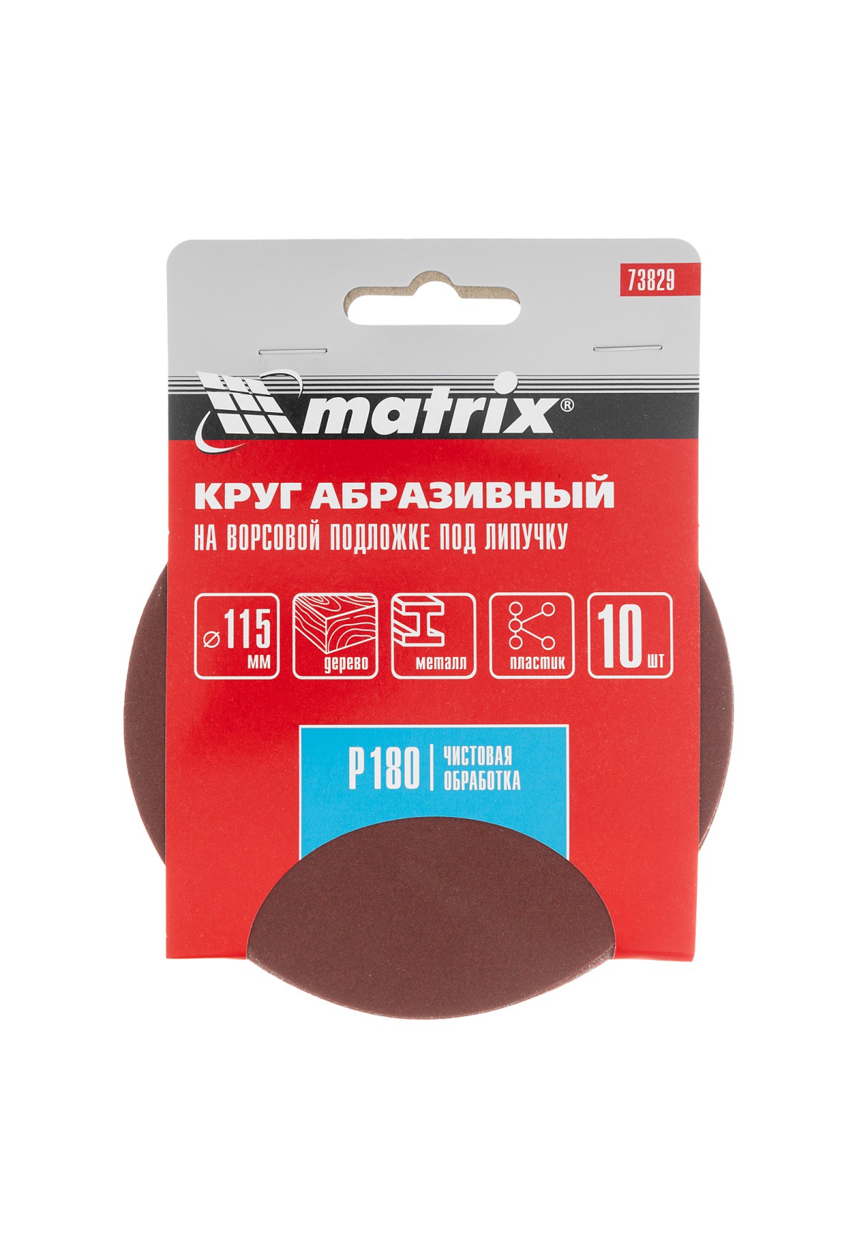 Круг абразивный на ворсовой подложке под "липучку", P 180, 115 мм, 10 шт Matrix
