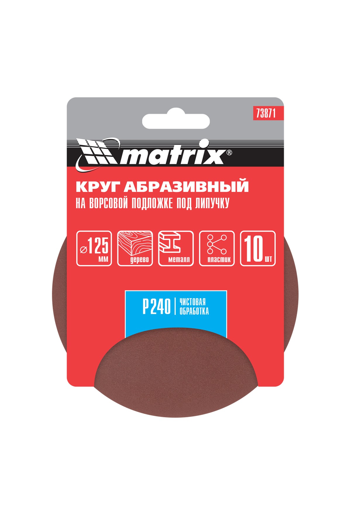 • Круг абразивный на ворсовой подложке под "липучку", P 240, 125 мм, 10 шт Matrix