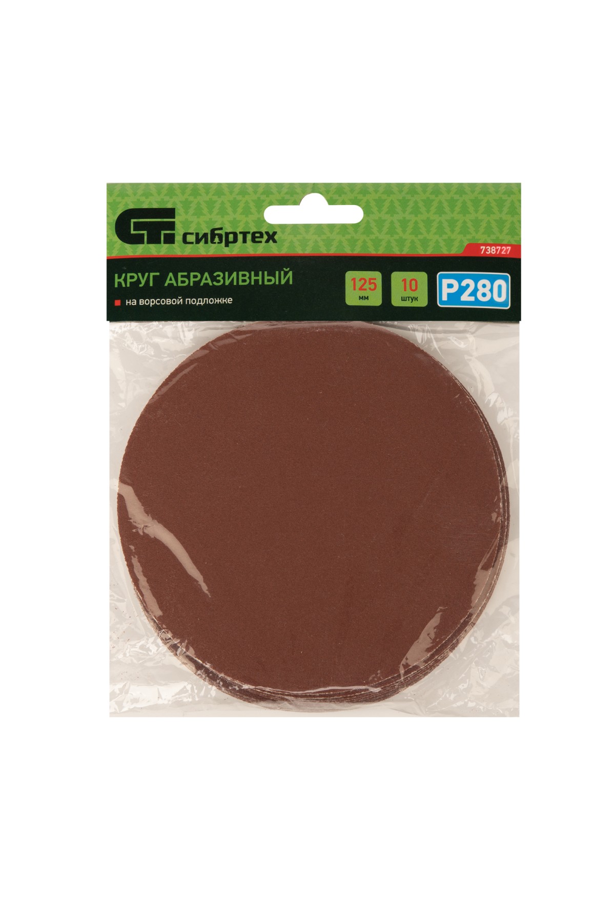 Круг абразивный на ворсовой подложке под "липучку", P 280, 125 мм, 10 шт Сибртех