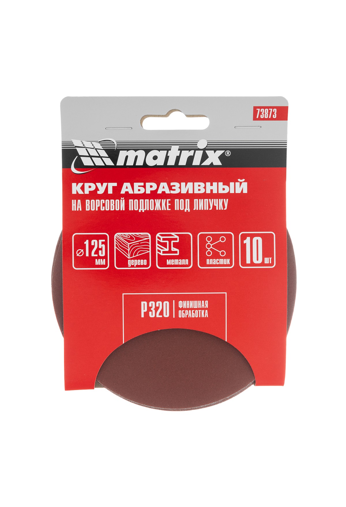 • Круг абразивный на ворсовой подложке под "липучку", P 320, 125 мм, 10 шт Matrix
