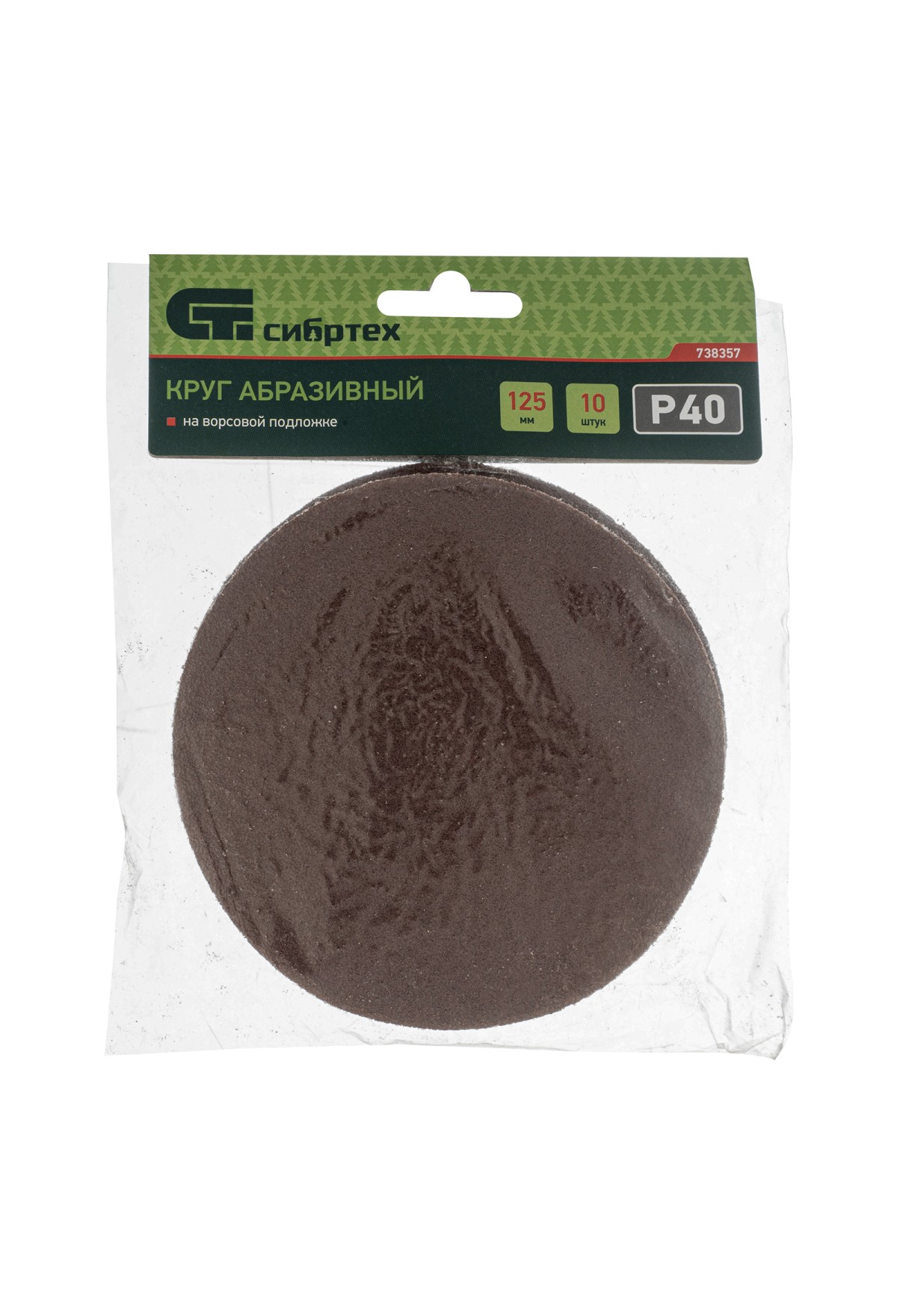 Технические характеристики Круг абразивный на ворсовой подложке под "липучку", P 40, 125 мм, 10 шт Сибртех