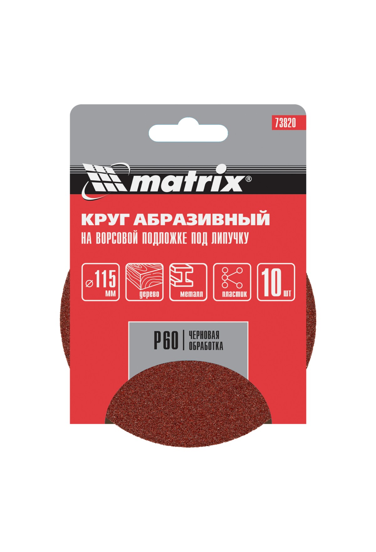 Абразивный круг на ворсовой подложке под «липучку» Matrix Р60 арт. 73820 используется для сухого чернового шлифования металла, дерева, пластика и других поверхностей. Круг устанавливается на эксцентриковые (орбитальные) шлифовальные машинки или на дрель с помощью опорной насадки Matrix.