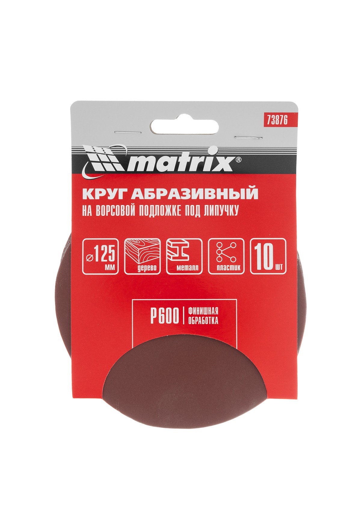 • Круг абразивный на ворсовой подложке под "липучку", P 600, 125 мм, 10 шт Matrix