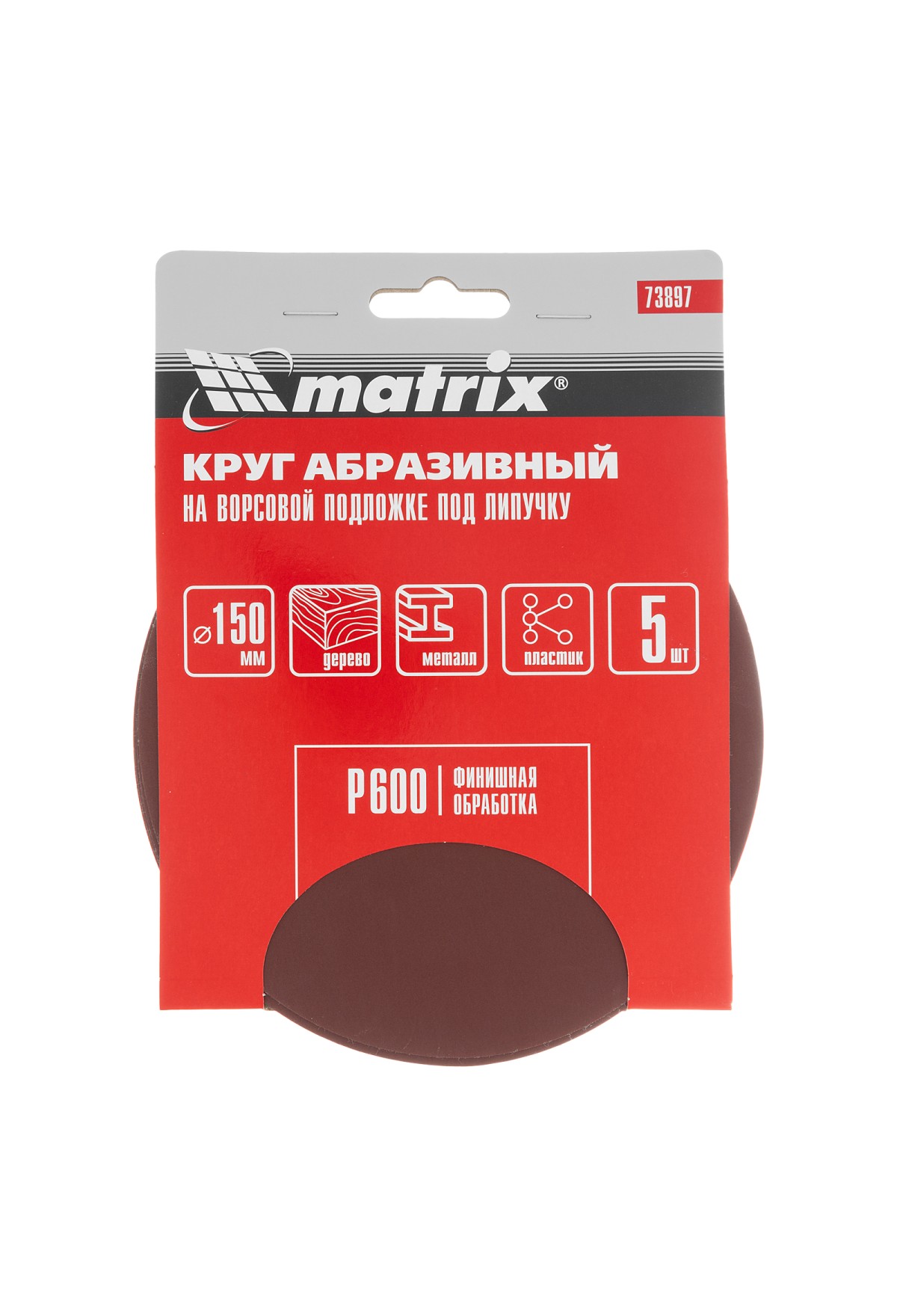 • Круг абразивный на ворсовой подложке под "липучку", P 600, 150 мм, 5 шт Matrix