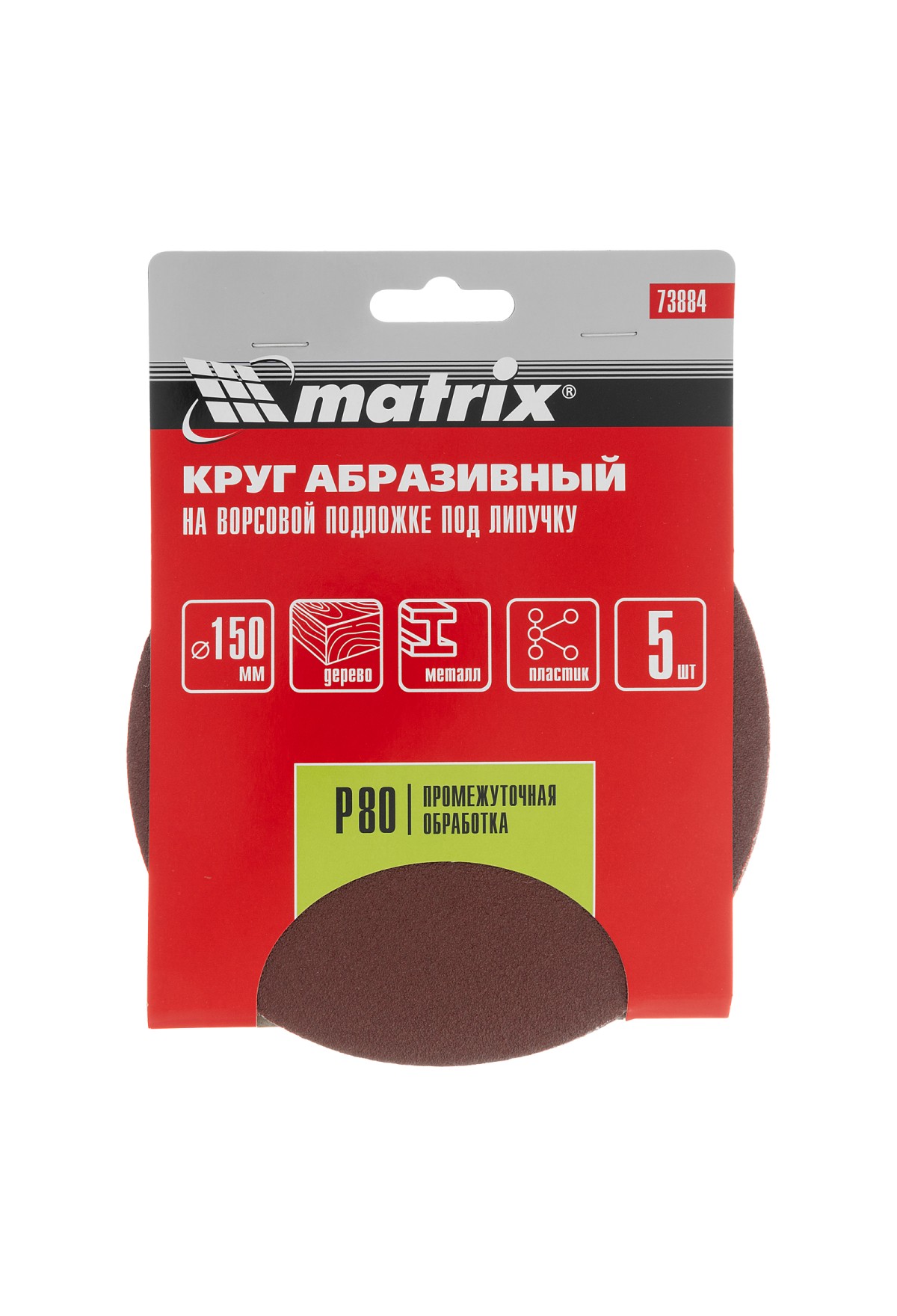 • Круг абразивный на ворсовой подложке под "липучку", P 80, 150 мм, 5 шт Matrix