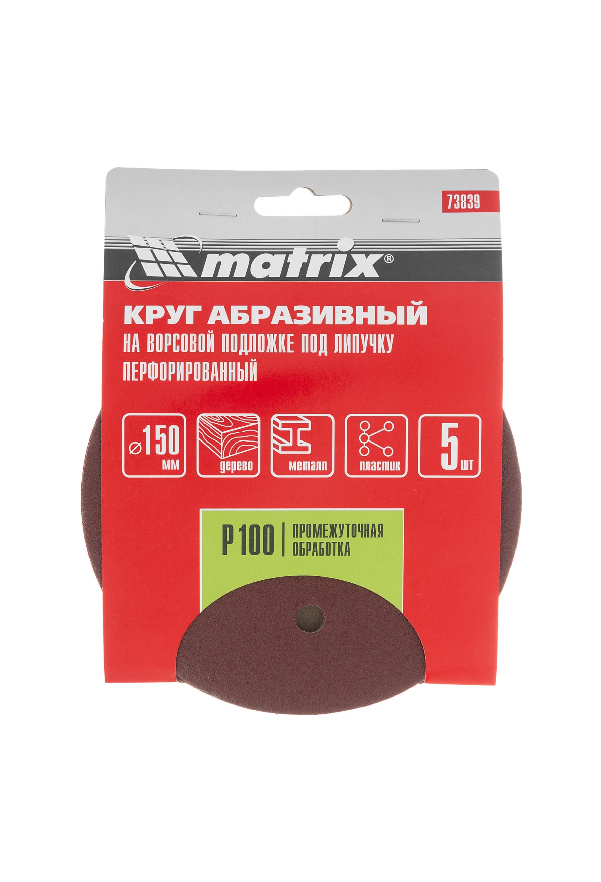 • Круг абразивный на ворсовой подложке под "липучку", перфорированный, P 100, 150 мм, 5 шт Matrix