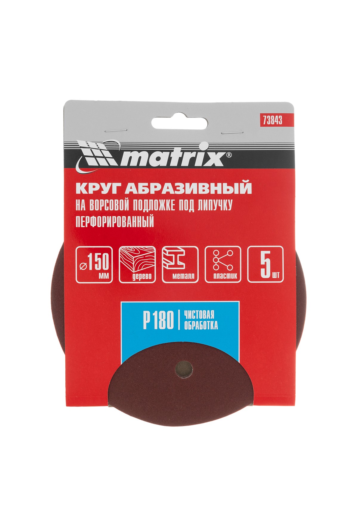 Технические характеристики Круг абразивный на ворсовой подложке под "липучку", перфорированный, P 180, 150 мм, 5 шт Matrix