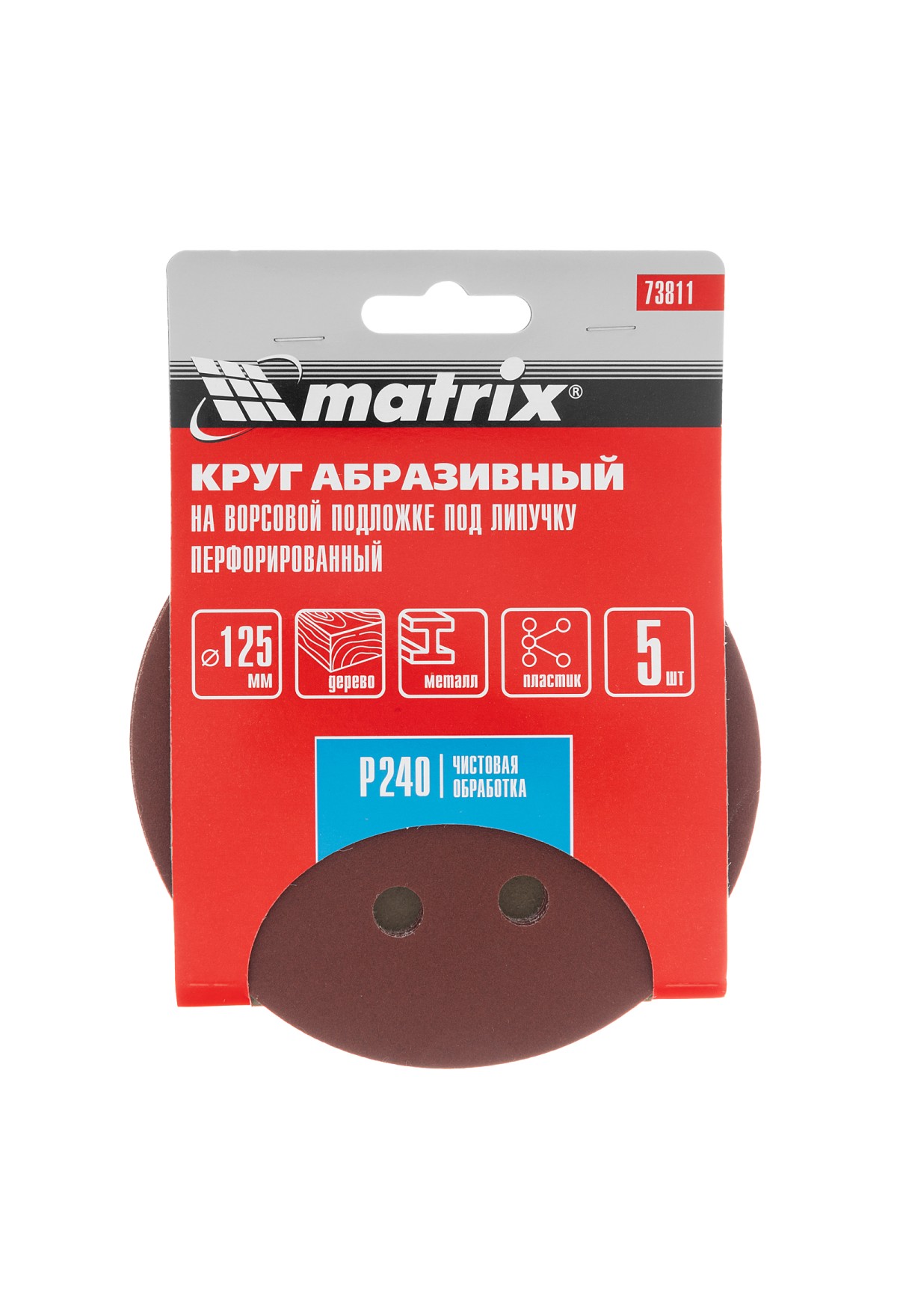 Перфорированный абразивный круг Matrix 73811 диаметром 125 мм, с мелкозернистым абразивом P 240, на ворсовой подложке под «липучку», 5 шт. в упаковке, используется для сухого финишного шлифования металла, древесины, пластика и других материалов. Позволяет устранить мелкие недостатки перед окрашиванием. Круг устанавливается на эксцентриковую (орбитальную) шлифовальную машинку с отводом воздуха или на дрель с помощью опорной насадки Matrix.
