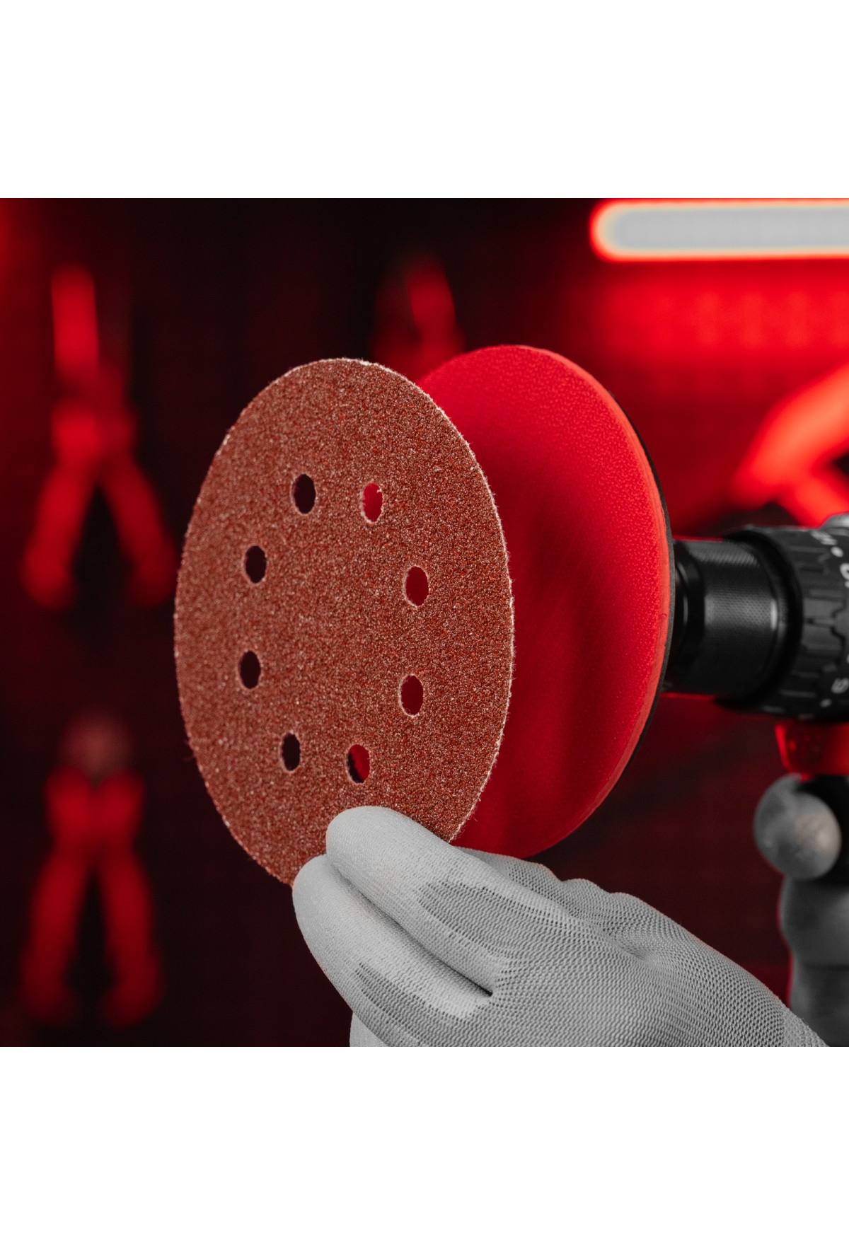 - Эффективная обработка — перфорация обеспечивает быстрый отвод отработанного материала, что особенно важно при шлифовке древесины.