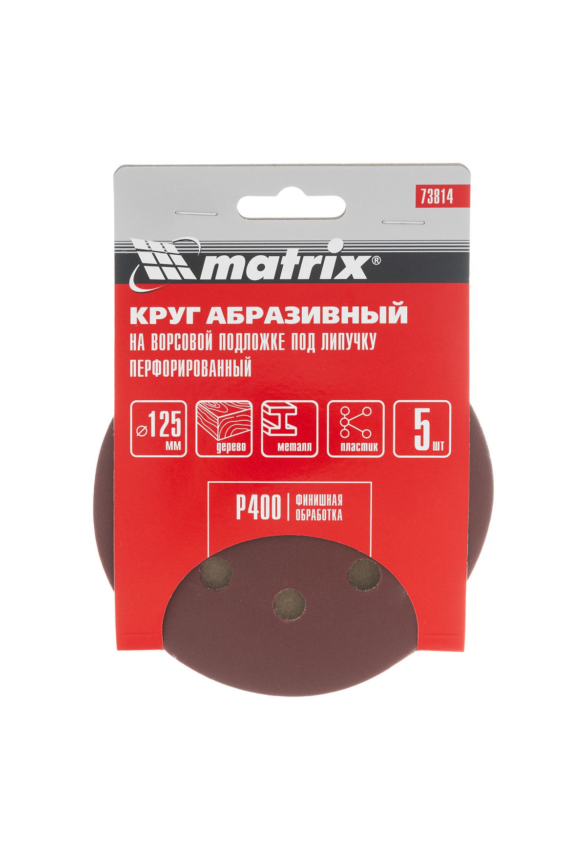 Перфорированный абразивный круг Matrix 73814 диаметром 125 мм, с мелкозернистым абразивом P 400, на ворсовой подложке под «липучку», 5 шт. в упаковке, используется для сухого финишного шлифования металла, древесины, пластика и других материалов. Придает поверхности гладкость и блеск. Круг устанавливается на эксцентриковую (орбитальную) шлифовальную машинку с отводом воздуха или на дрель с помощью опорной насадки Matrix.