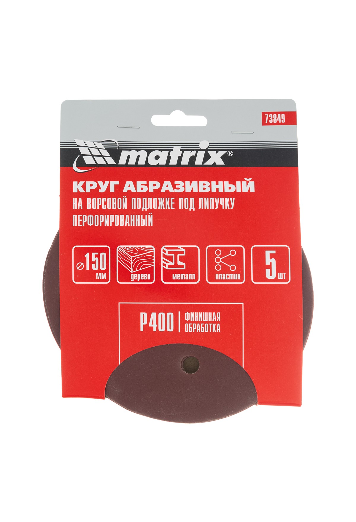 • Круг абразивный на ворсовой подложке под "липучку", перфорированный, P 400, 150 мм, 5 шт Matrix