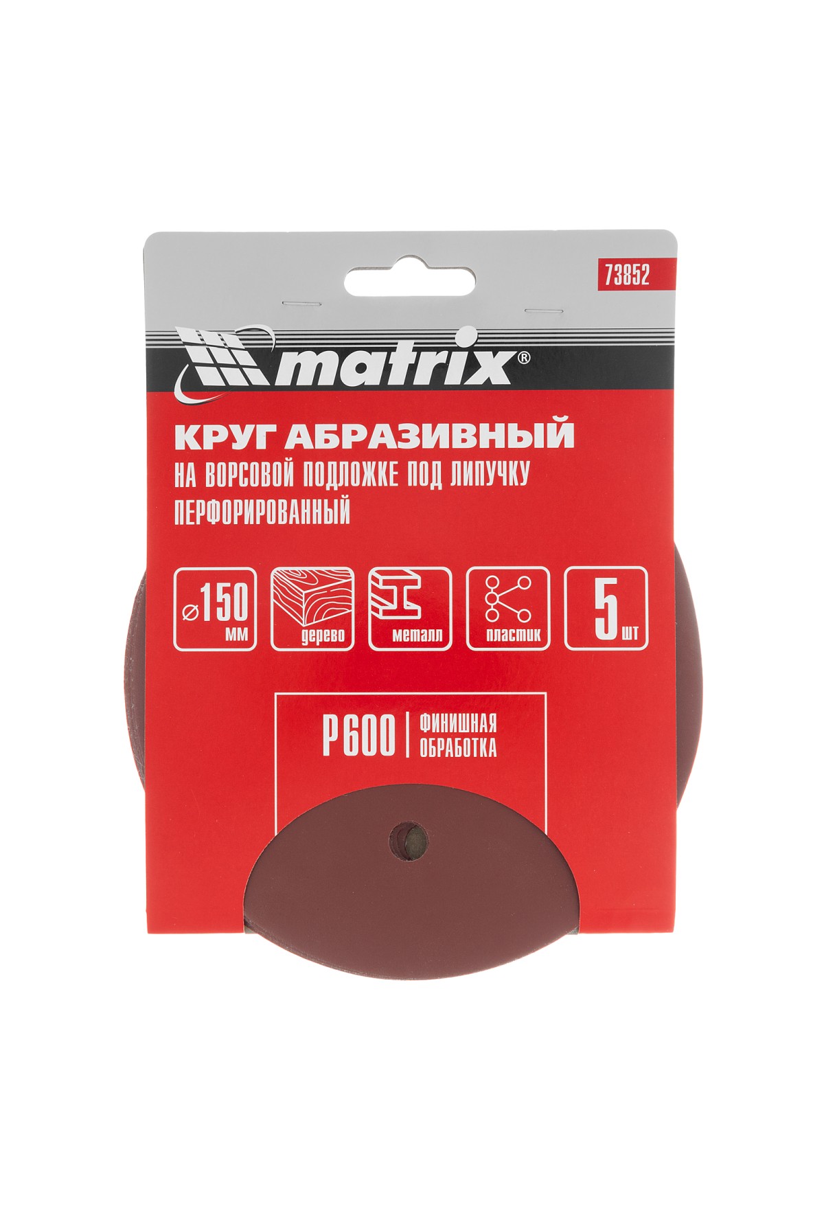 Технические характеристики Круг абразивный на ворсовой подложке под "липучку", перфорированный, P 600, 150 мм, 5 шт Matrix