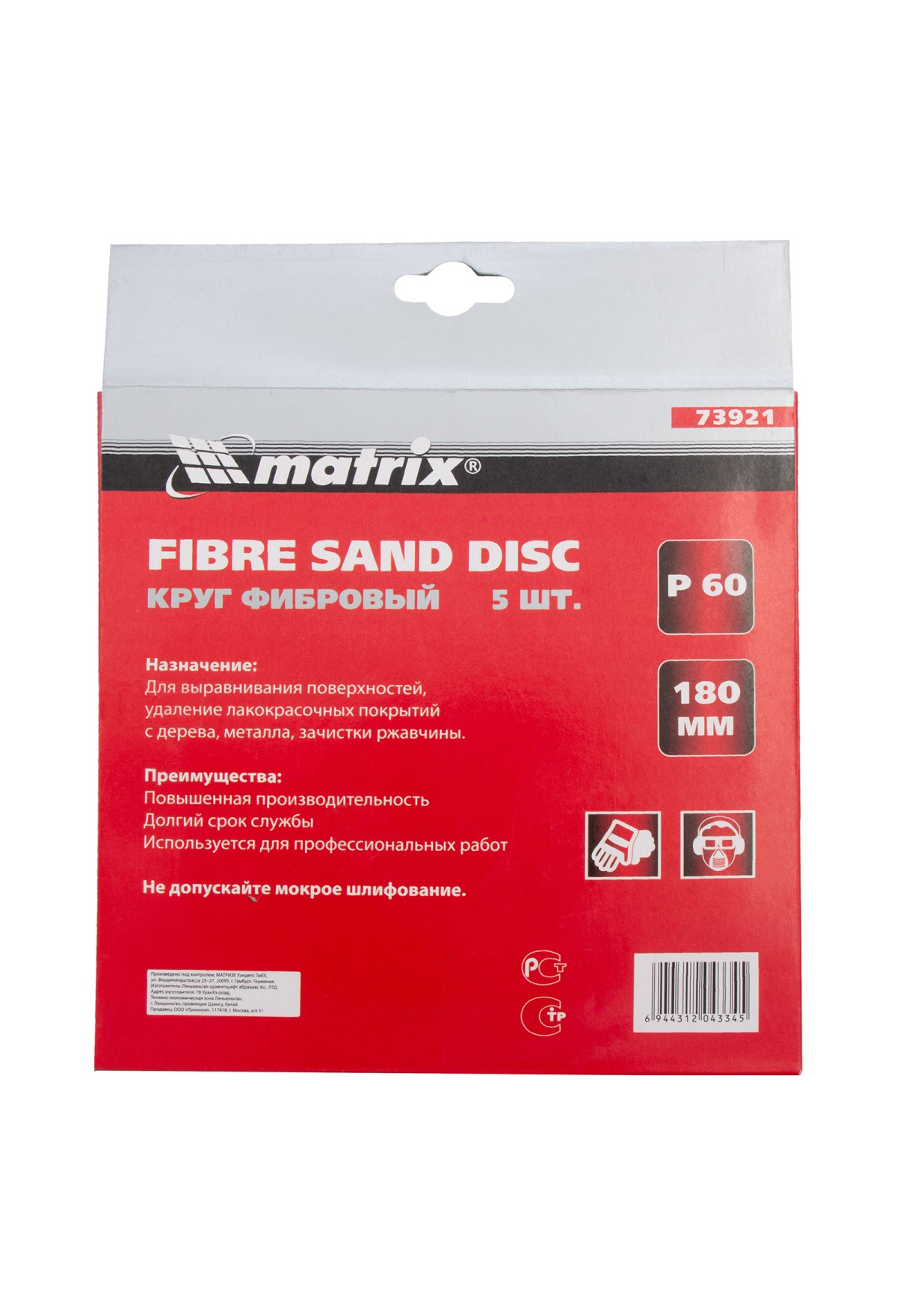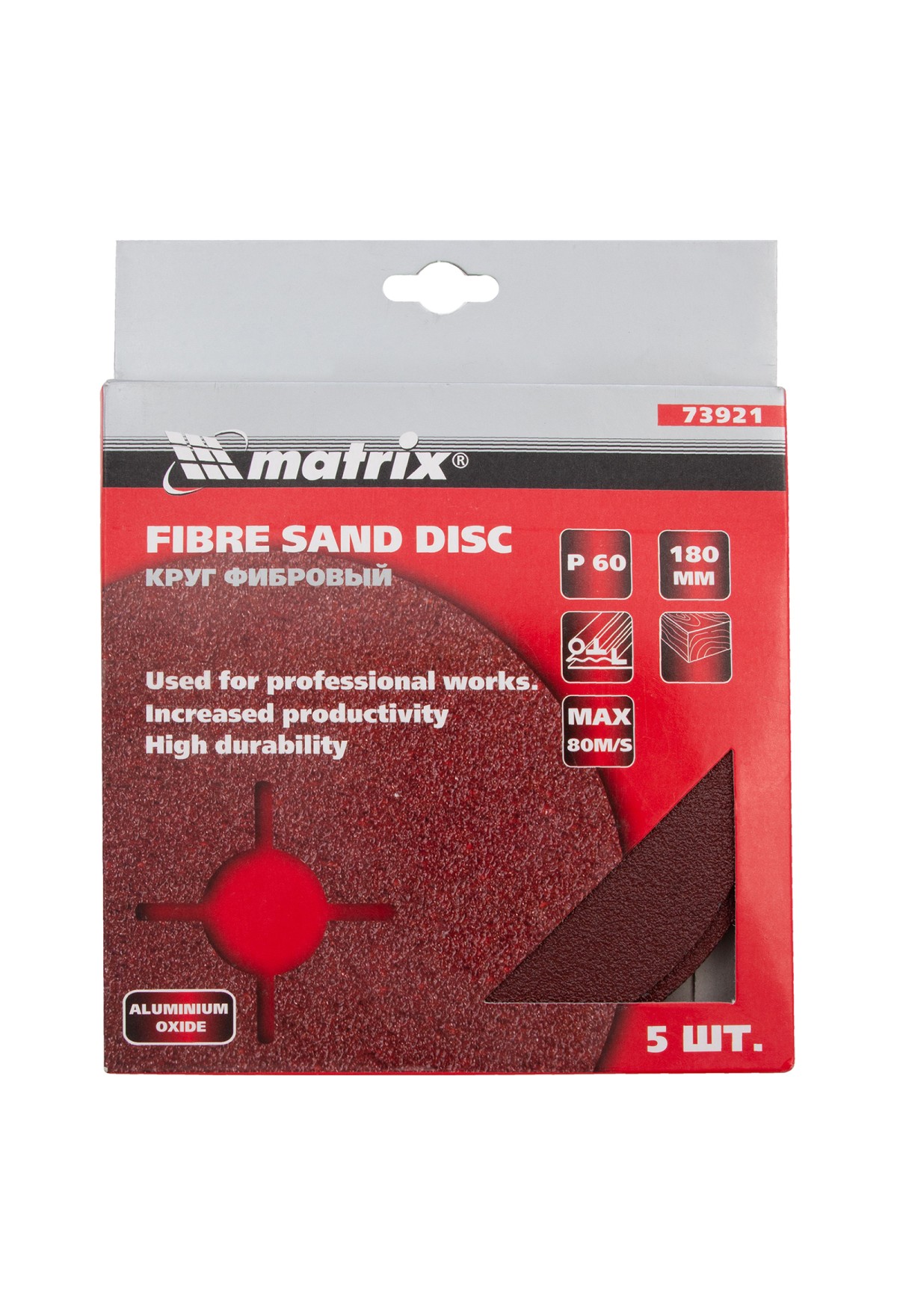 Фибровый круг Matrix 73921 размером 180 х 22 мм, с абразивом P 60, 5 шт. в упаковке, устанавливается на углошлифовальную машину (УШМ) при помощи опорной тарелки для фибровых кругов. Крупнозернистый абразив Р 60 используется для грубой обработки металлических, каменных и деревянных изделий, позволяет снимать старые лакокрасочные покрытия, удалять заусенцы и сварные швы, следы ржавчины и потертости. Благодаря прочной основе ресурс у фибровых кругов в 2-3 раза больше, чем у шлифкругов «под липучку».
