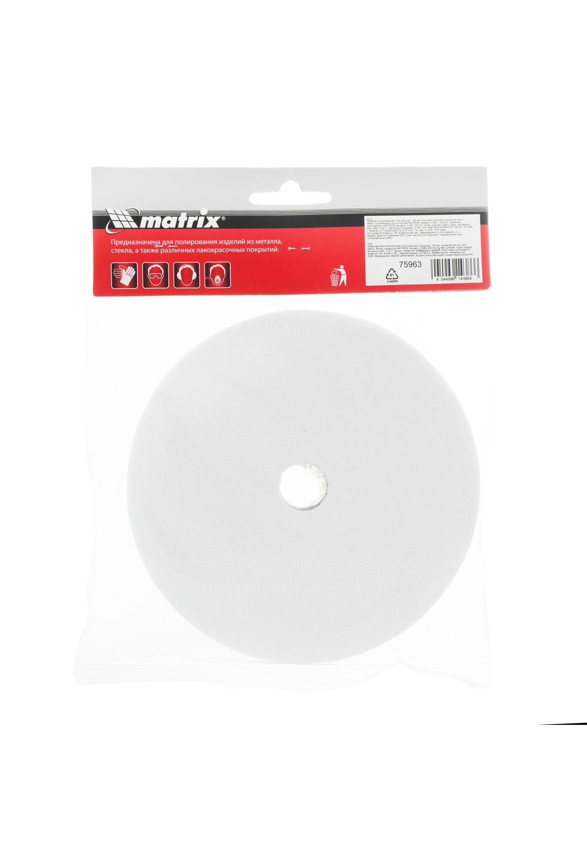 Полировальная насадка «под липучку» Matrix 75963 с короткой плетеной шерстяной нитью устанавливается на опорную тарелку дрели или шлифовальной машинки, работающей с оснасткой диаметром 150 мм. Ее используют при финишной обработке металлических, стеклянных и окрашенных поверхностей. Короткий ворс быстро устраняет мелкие трещины и царапины, а также придает блеск. Насадка пригодится для работ в автосервисе или личном гараже.