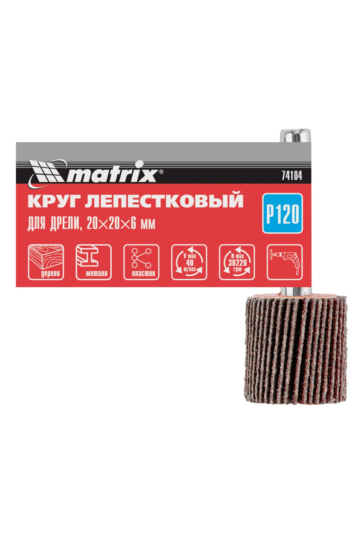 Технические характеристики Круг лепестковый для дрели, 20 х 20 х 6 мм, P 120 Matrix