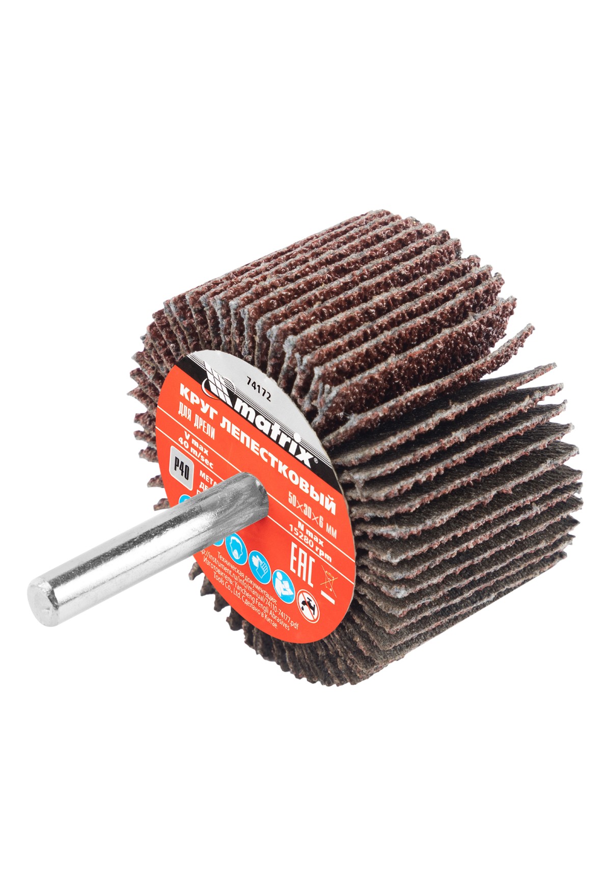 Лепестковый круг Matrix 74172 размером 50 х 30 х 6 мм, с зернистостью P 40, — оснастка для дрелей и прямых шлифовальных машинок с посадочным гнездом 6 мм, рассчитанная на скорость до 9500 об/мин. Круг применяется для грубой обработки древесины, металла и других материалов. Крупнозернистый абразив P 40 эффективно снимает толстые слои краски и ржавчины, зачищает сварные швы, удаляет заусенцы.