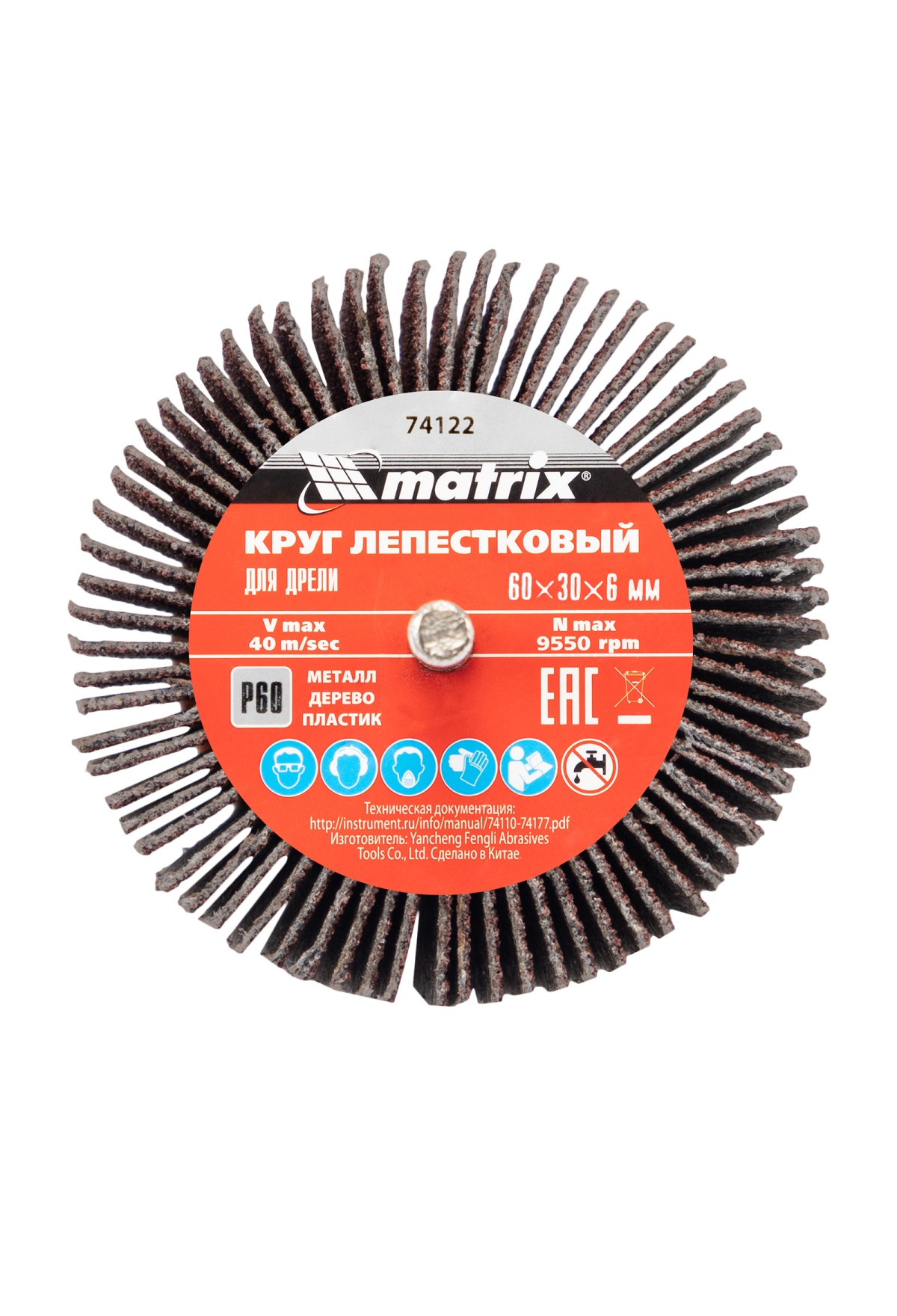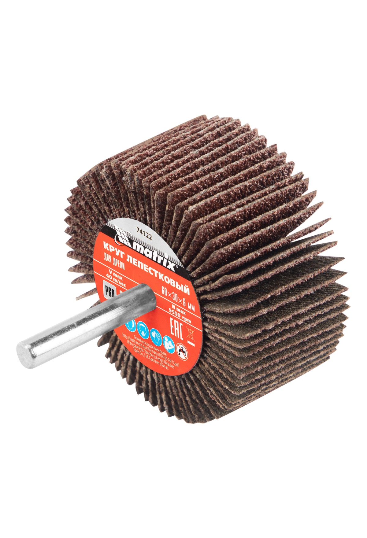 Лепестковый круг для дрели Matrix 74122 размером 60 х 30 х 6 мм, с зернистостью P 60, используется для черновой обработки металлических и деревянных поверхностей. Имеет стальной хвостовик диаметром 6 мм, при помощи которого устанавливается в патрон дрели или прямой шлифовальной машины с максимальной скоростью вращения 8000 об/мин. Крупнозернистый абразив P 60 легко удаляет слои ржавчины, краски и лака, обрабатывает сварные швы, удаляет заусенцы.