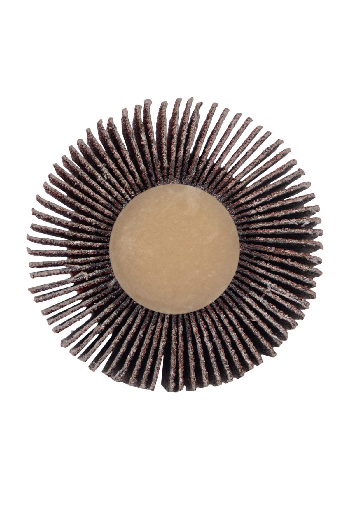 - Надежность — лепестки из прочной х/б ткани прикреплены к оправке при помощи бакелитовой смолы, поэтому круг устойчив к трению и давлению.