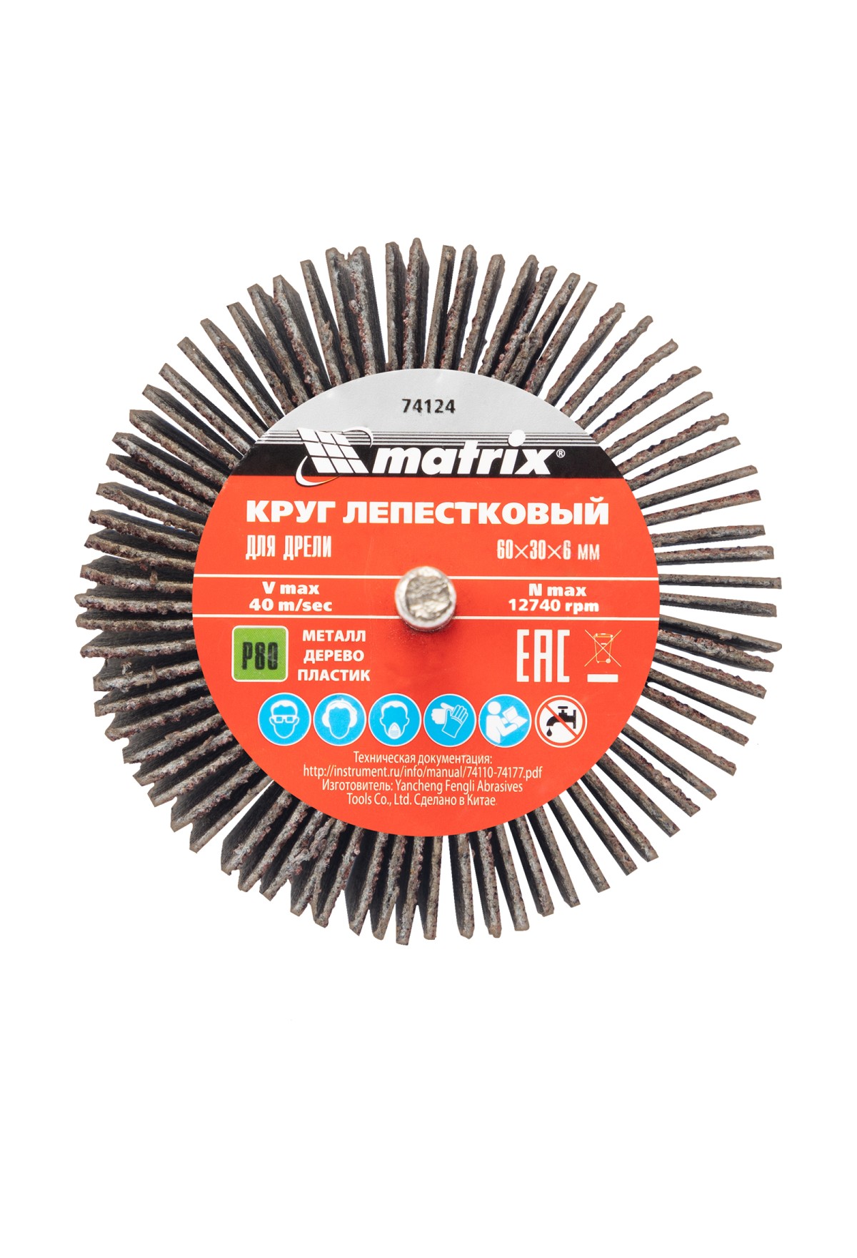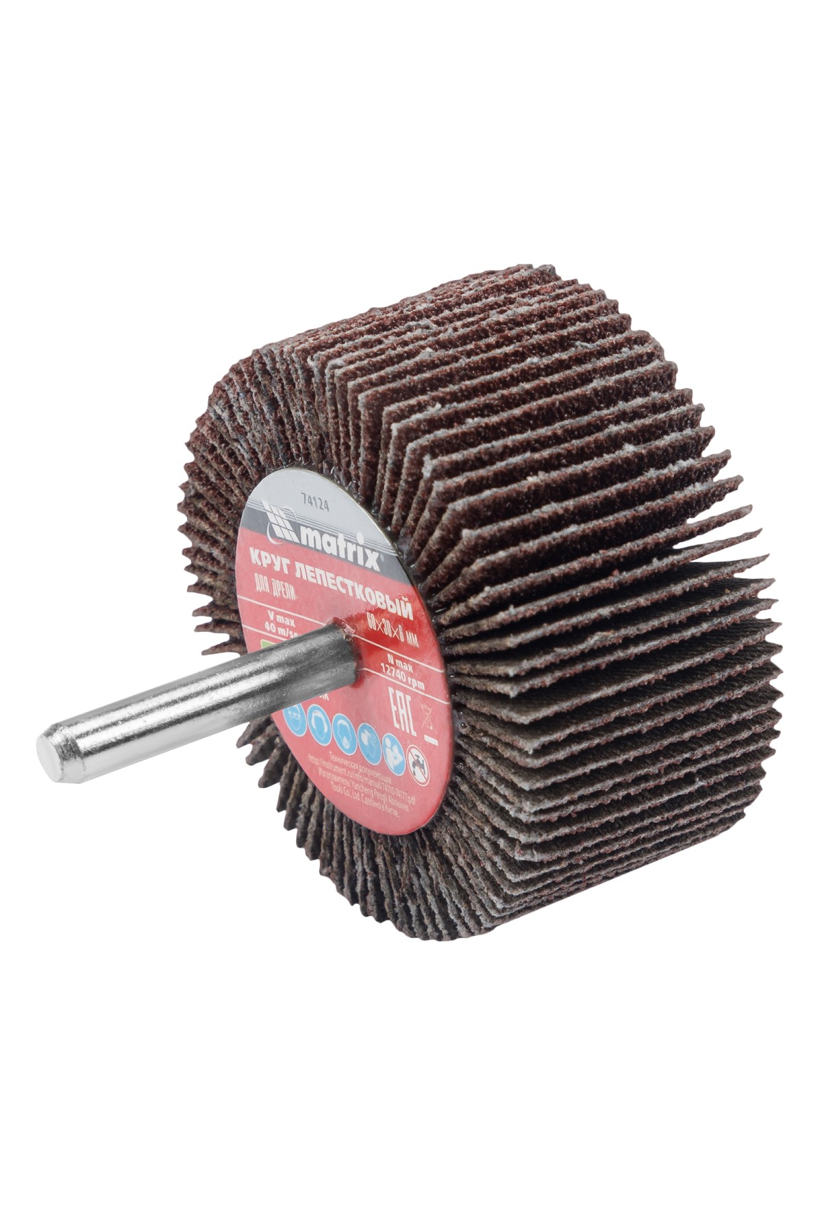 Лепестковый круг Matrix 74124 размером 60 х 30 х 6 мм, с зернистостью P 80, совместим с дрелями и прямыми шлифовальными машинами с посадочным диаметром 6 мм и максимальной скоростью вращения 8000 об/мин. Предназначен для радиального шлифования внутренних и наружных поверхностей. Абразив P 80 позволяет проводить промежуточную обработку древесины и металла — удалять заусенцы, слои лака, ржавчины или краски, зачищать сварные швы, готовить поверхности к чистовому шлифованию.