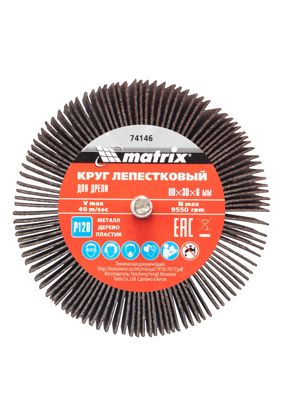 Технические характеристики Круг лепестковый для дрели, 80 х 30 х 6 мм, P 120 Matrix