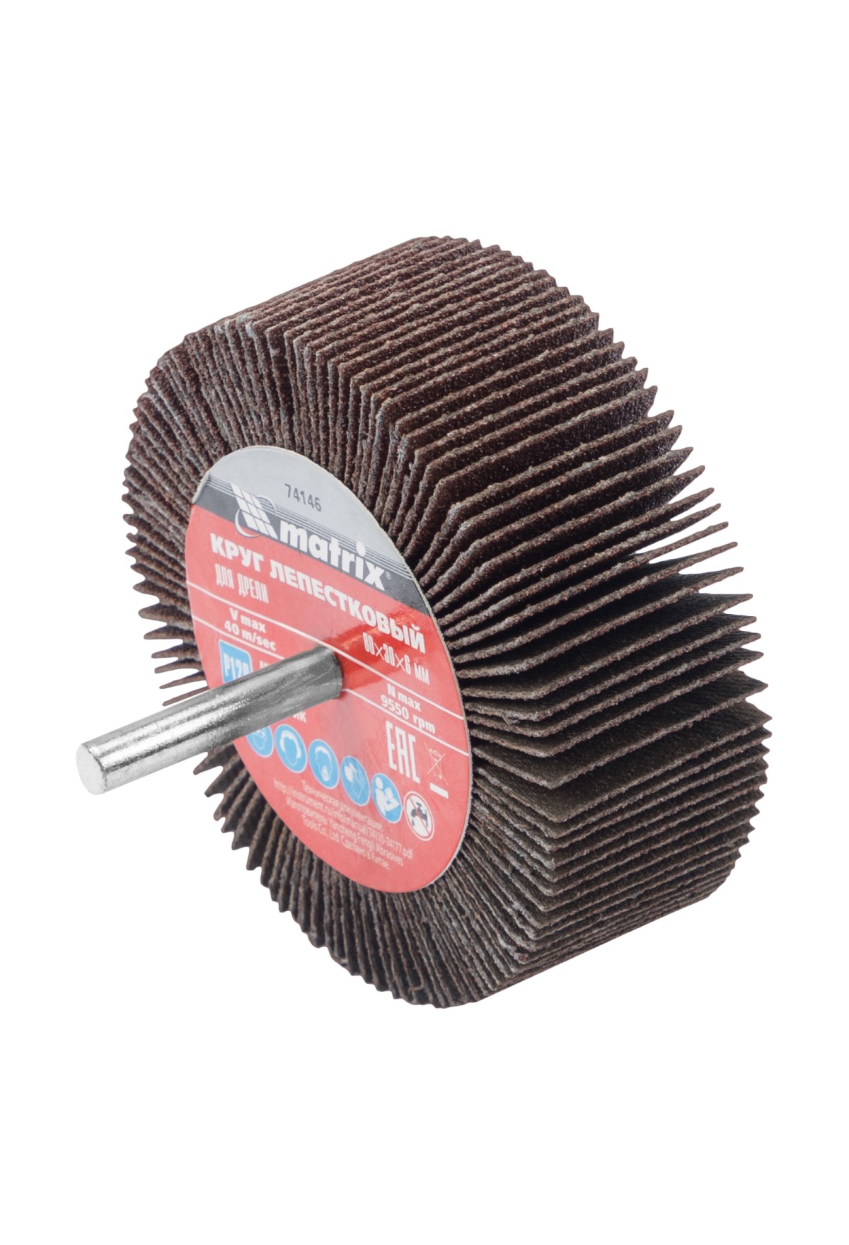 На складе Код товара: VR6-74169 Круг лепестковый для дрели, 40 х 20 х 6 мм, P 120 Matrix