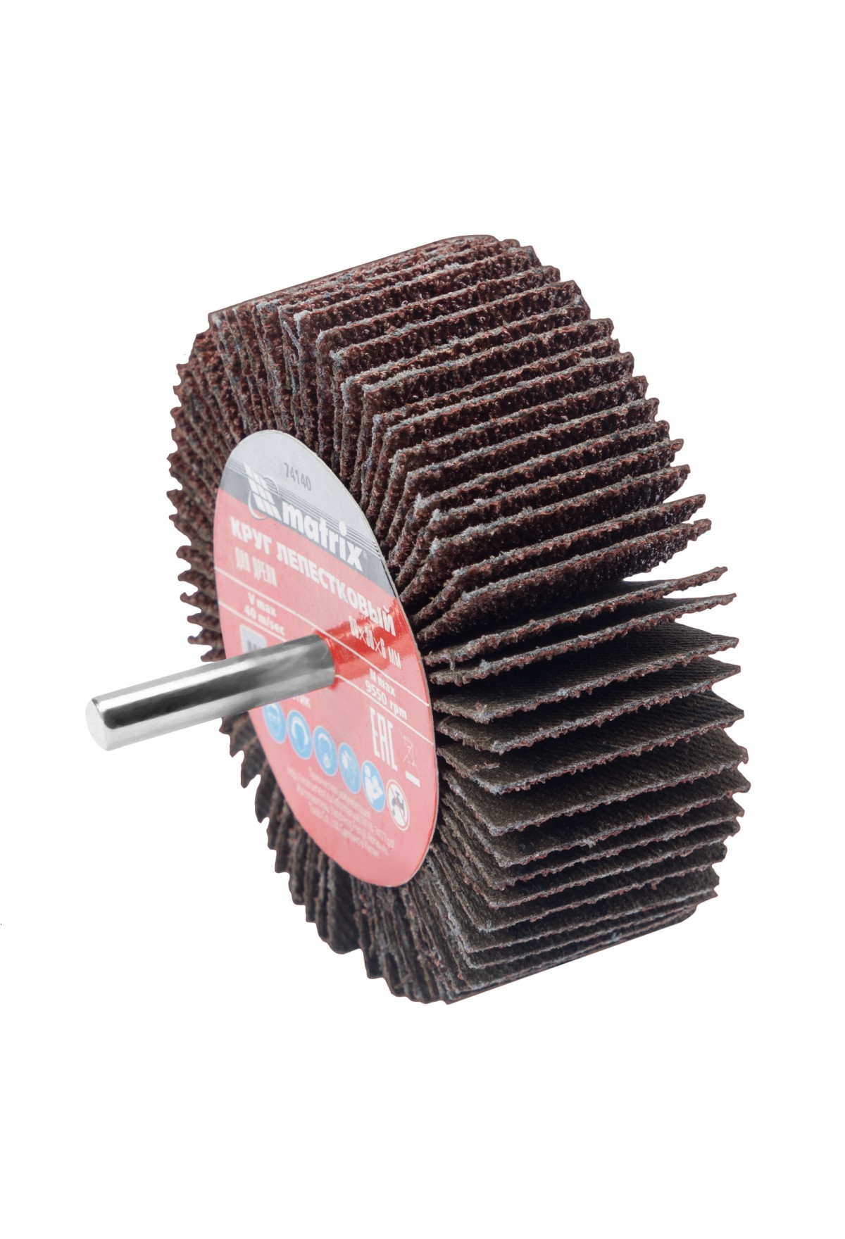 Лепестковый круг Matrix 74140 размером 80 х 30 х 6 мм, с зернистостью P 40, — оснастка для дрелей и прямых шлифовальных машинок с посадочным гнездом 6 мм, рассчитанная на скорость до 6000 об/мин. Круг применяется для грубой обработки древесины, металла и других материалов. Крупнозернистый абразив P 40 эффективно снимает толстые слои краски и ржавчины, зачищает сварные швы, удаляет заусенцы.