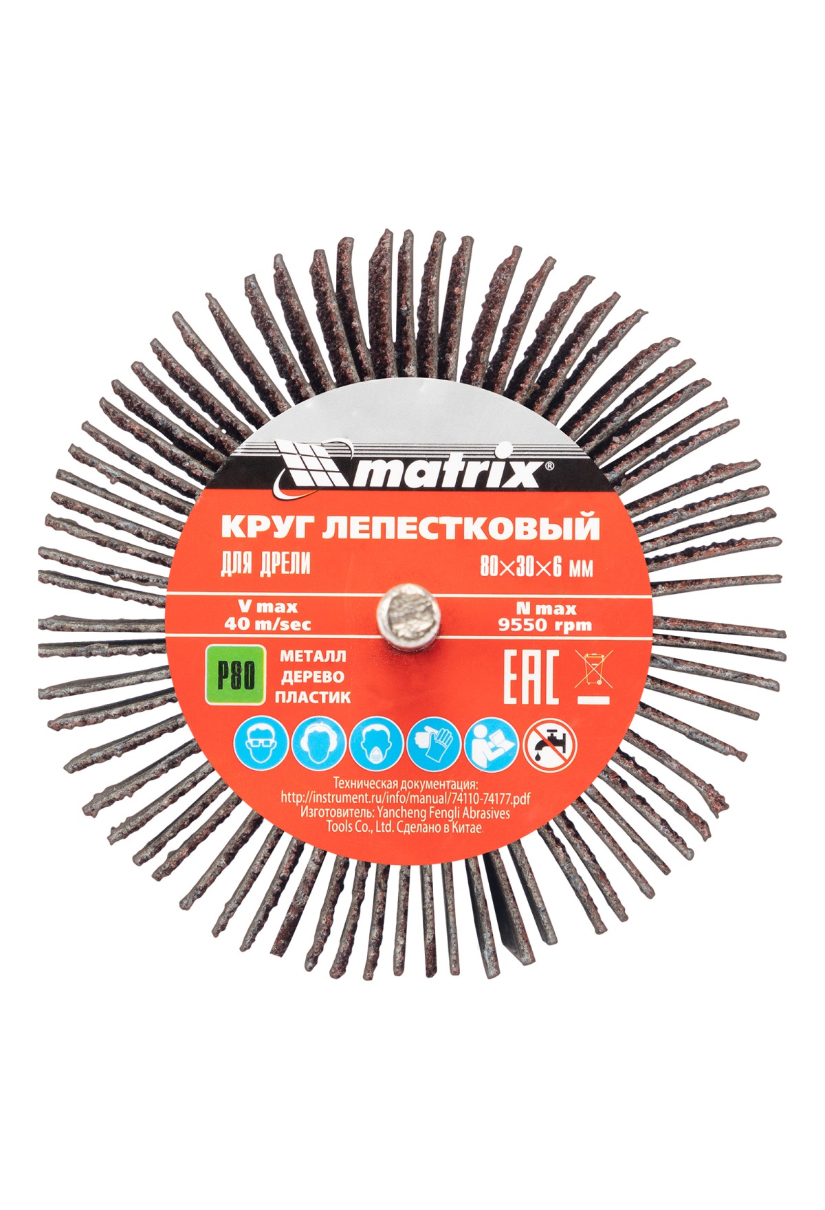 Лепестковый круг Matrix 74144 размером 80 х 30 х 6 мм, с зернистостью P 80, совместим с дрелями и прямыми шлифовальными машинами с посадочным диаметром 6 мм и максимальной скоростью вращения 6000 об/мин. Предназначен для радиального шлифования внутренних и наружных поверхностей. Абразив P 80 позволяет проводить промежуточную обработку древесины и металла — удалять заусенцы, слои лака, ржавчины или краски, зачищать сварные швы, готовить поверхности к чистовому шлифованию.
