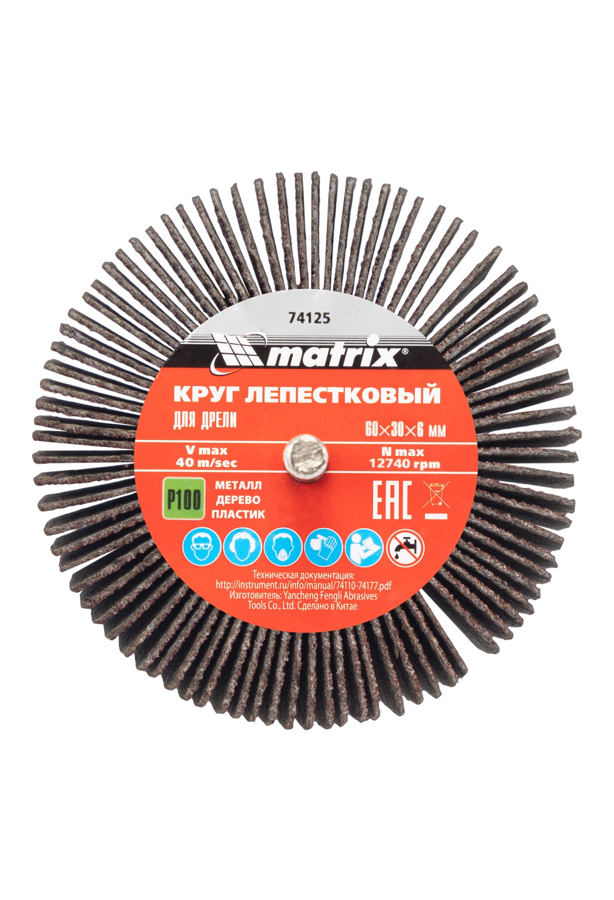 На складе Код товара: VR6-74047 Круг лепестковый торцевой, P 100, 125 х 22.2 мм Matrix