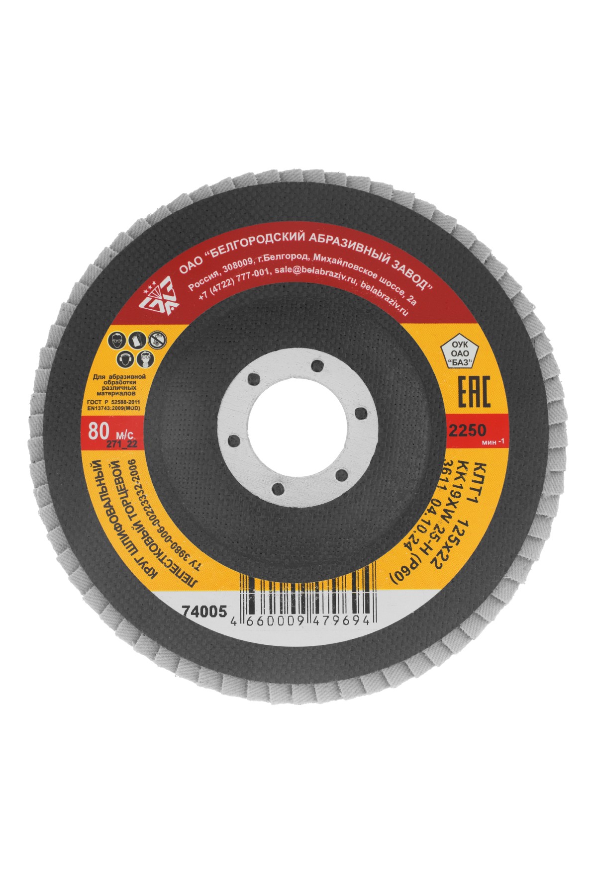Круг лепестковый торцевой БАЗ КЛТ-1 74005 зернистостью Р60 (25H), 125 х 22,2 мм, устанавливается в качестве оснастки на фланец УШМ с диаметром посадочного отверстия 22,2 мм. Он используется для черновой обработки, торцевого и плоского шлифования древесины, металла, пластика. С помощью круга можно зачистить сварные швы, острые углы после резки, удалить толстый слой ржавчины и краски, снять фаски и т.д.