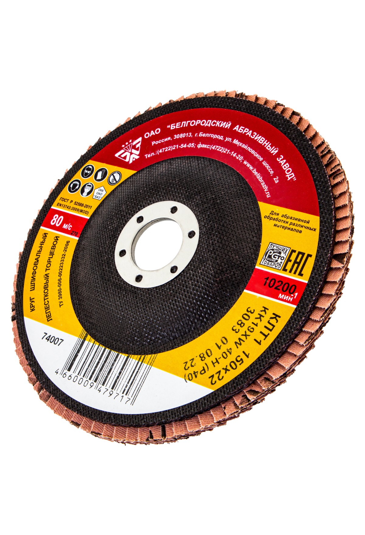 Круг лепестковый торцевой КЛТ-1, зернистость Р40(40Н), 150 х 22.2 мм,
