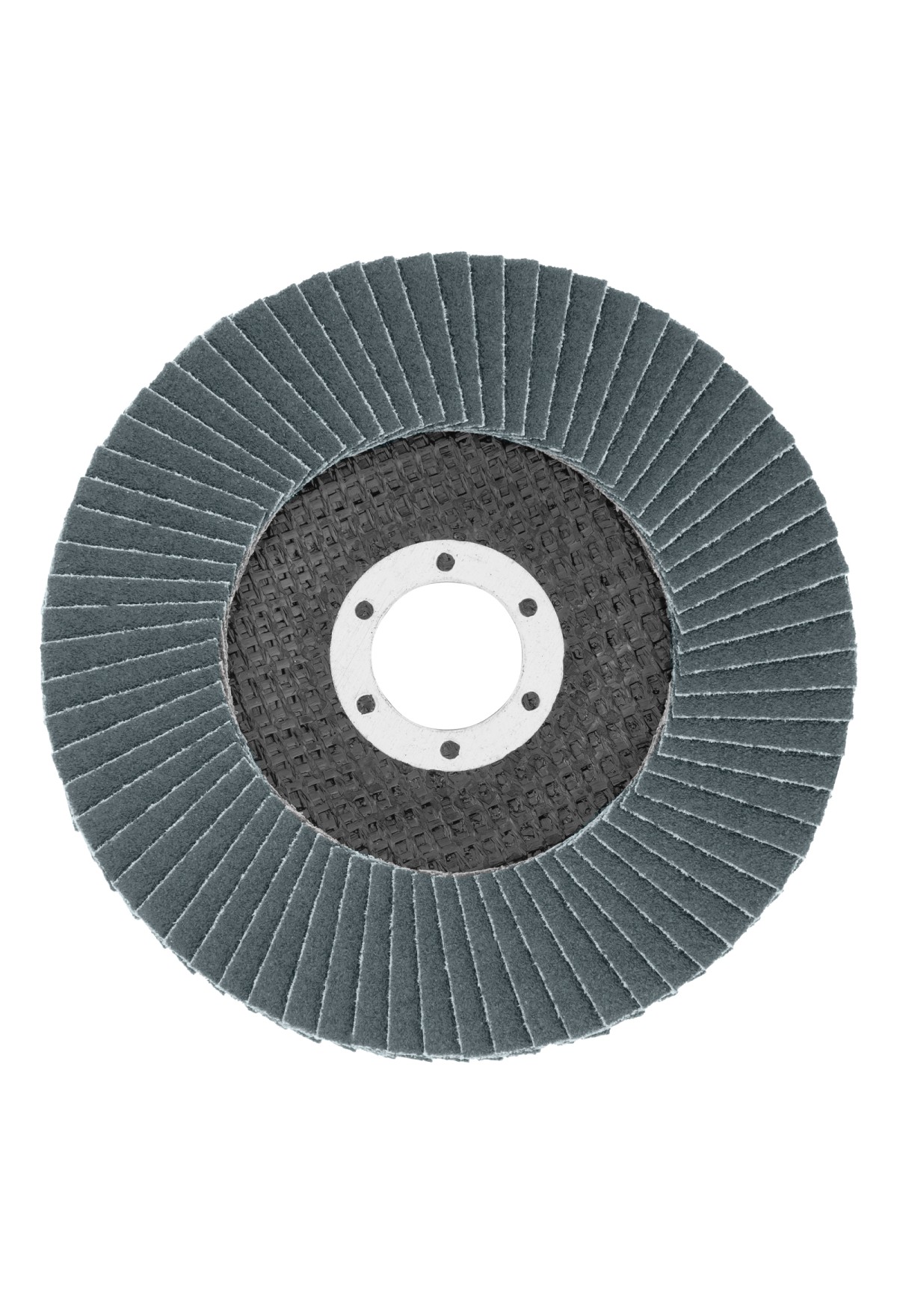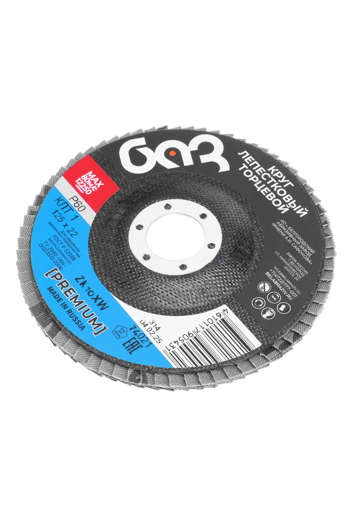Круг лепестковый торцевой БАЗ КЛТ-1 74021, ZK10XW (цирконий), зернистостью 25Н (Р60), 125 х 22,2 мм, предназначен для интенсивного чернового шлифования сталей, в том числе вязких, углеродистых и «нержавеек», а также пластика. Устанавливается на углошлифовальные машины с посадочным диаметром 22,2 мм. Круг обеспечивает быструю зачистку сварных швов, срезание заусенцев, снятие толстого слоя лакокрасочных материалов, ржавчины и др.