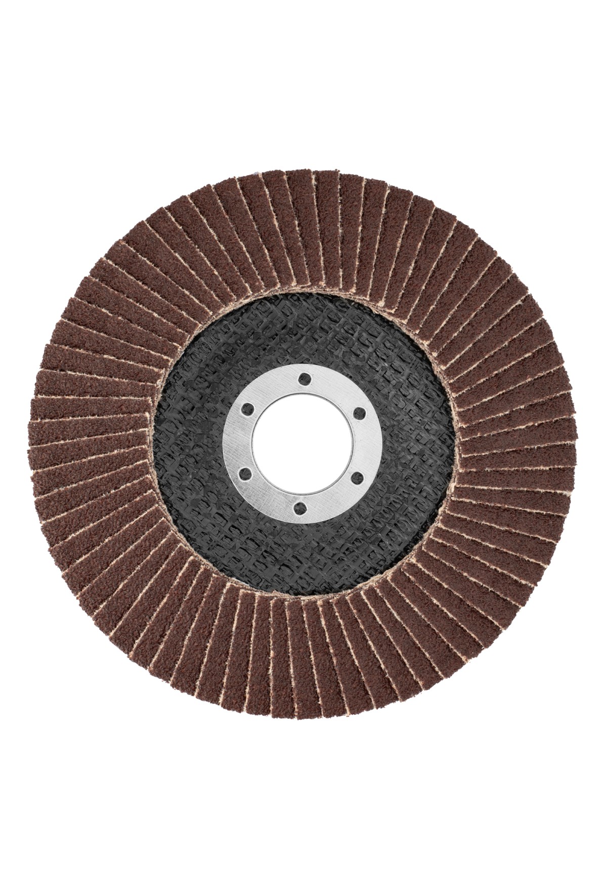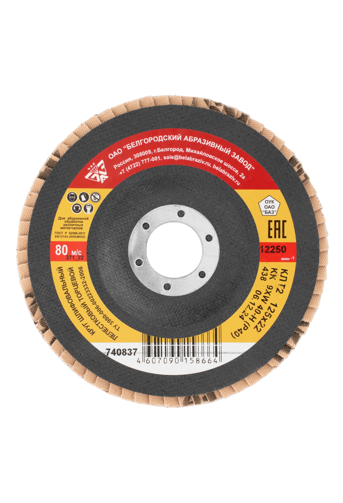 Круг лепестковый торцевой БАЗ КЛТ-2 740837 зернистостью Р40, 125 х 22,2 мм, устанавливается в качестве оснастки на фланец УШМ с диаметром посадочного отверстия 22,2 мм. Он используется для черновой обработки, торцевого и плоского шлифования древесины, металла, пластика. С помощью круга можно зачистить сварные швы, острые углы после резки, удалить толстый слой ржавчины и краски, снять фаски и т.д.