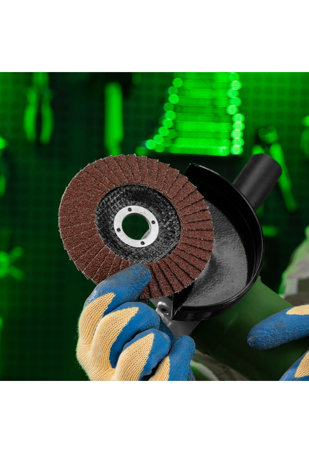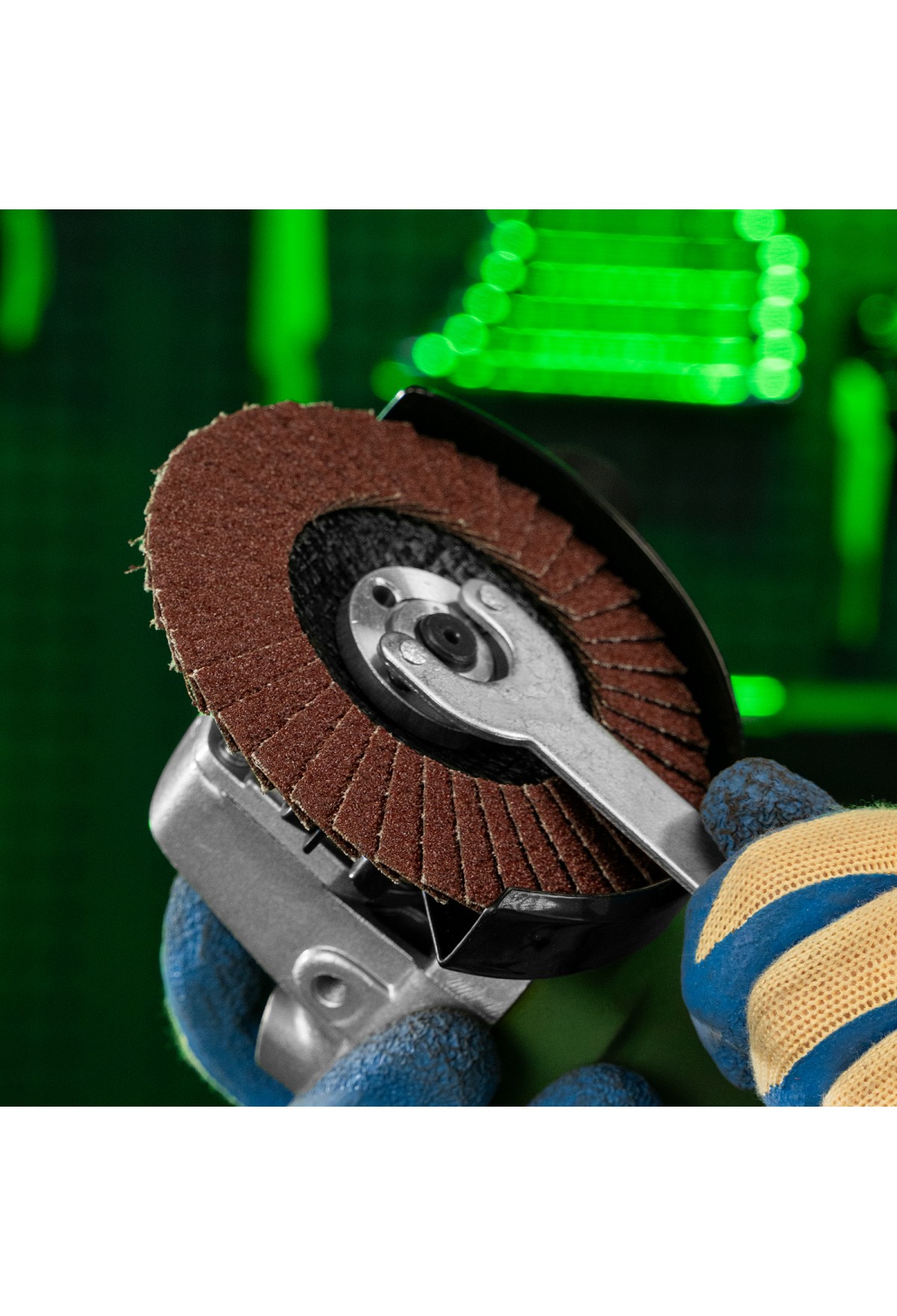- Прочность и долговечность — основа круга выполнена из прочного стекловолокна, а лепестки с абразивом надежно крепятся к ней синтетической смолой.