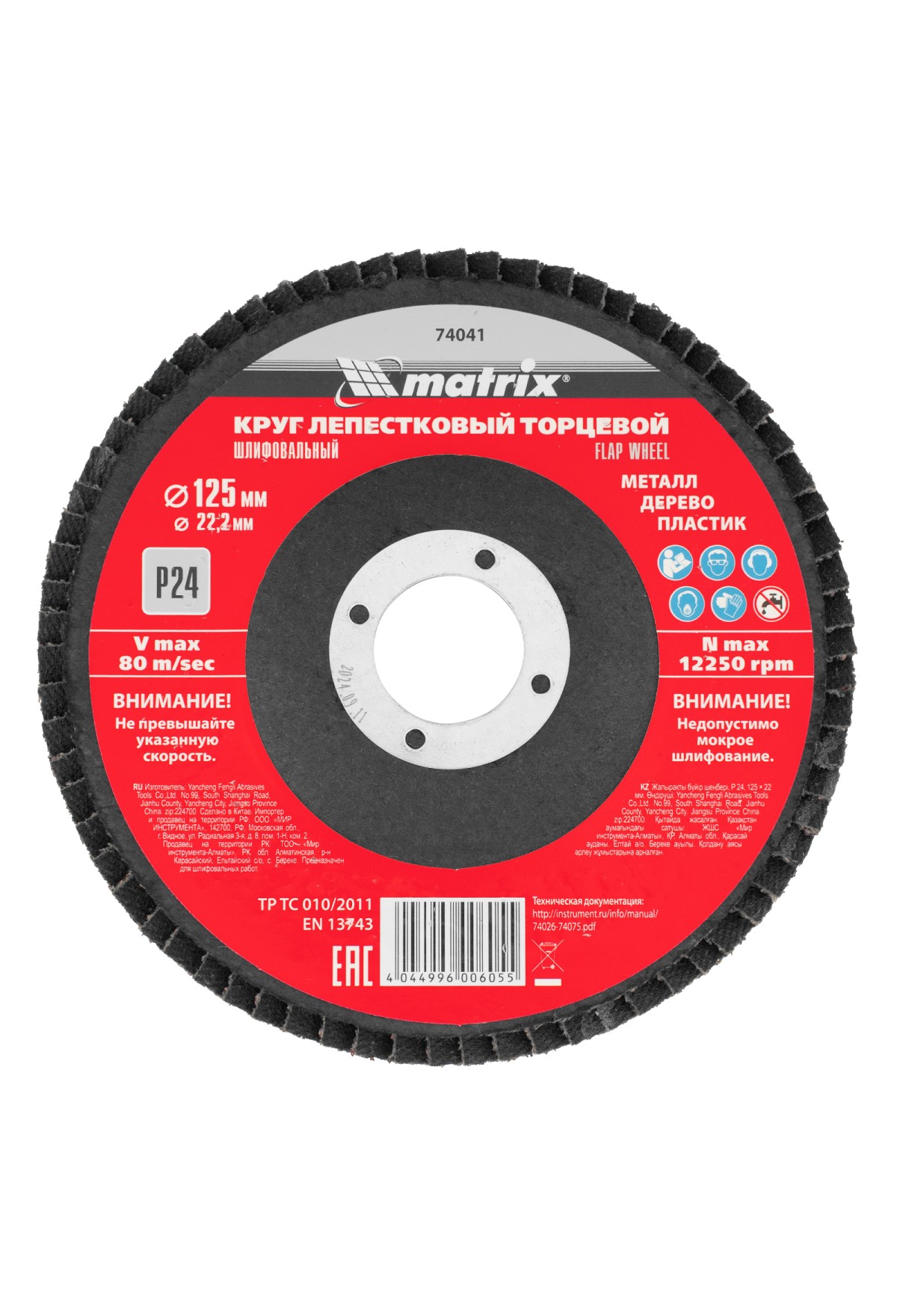 Технические характеристики Круг лепестковый торцевой, P 24, 125 х 22.2 мм Matrix