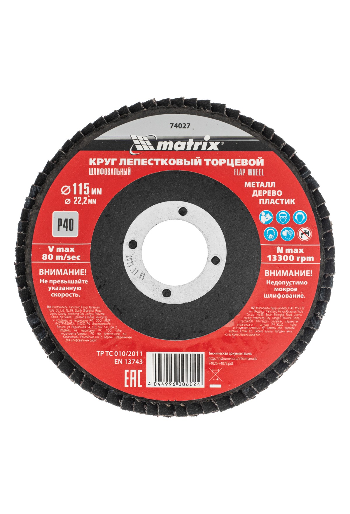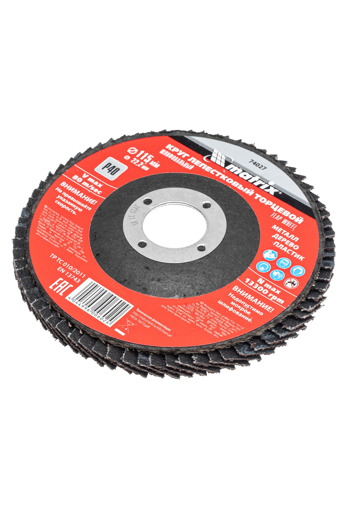 Технические характеристики Круг лепестковый торцевой, P 40, 115 х 22.2 мм Matrix