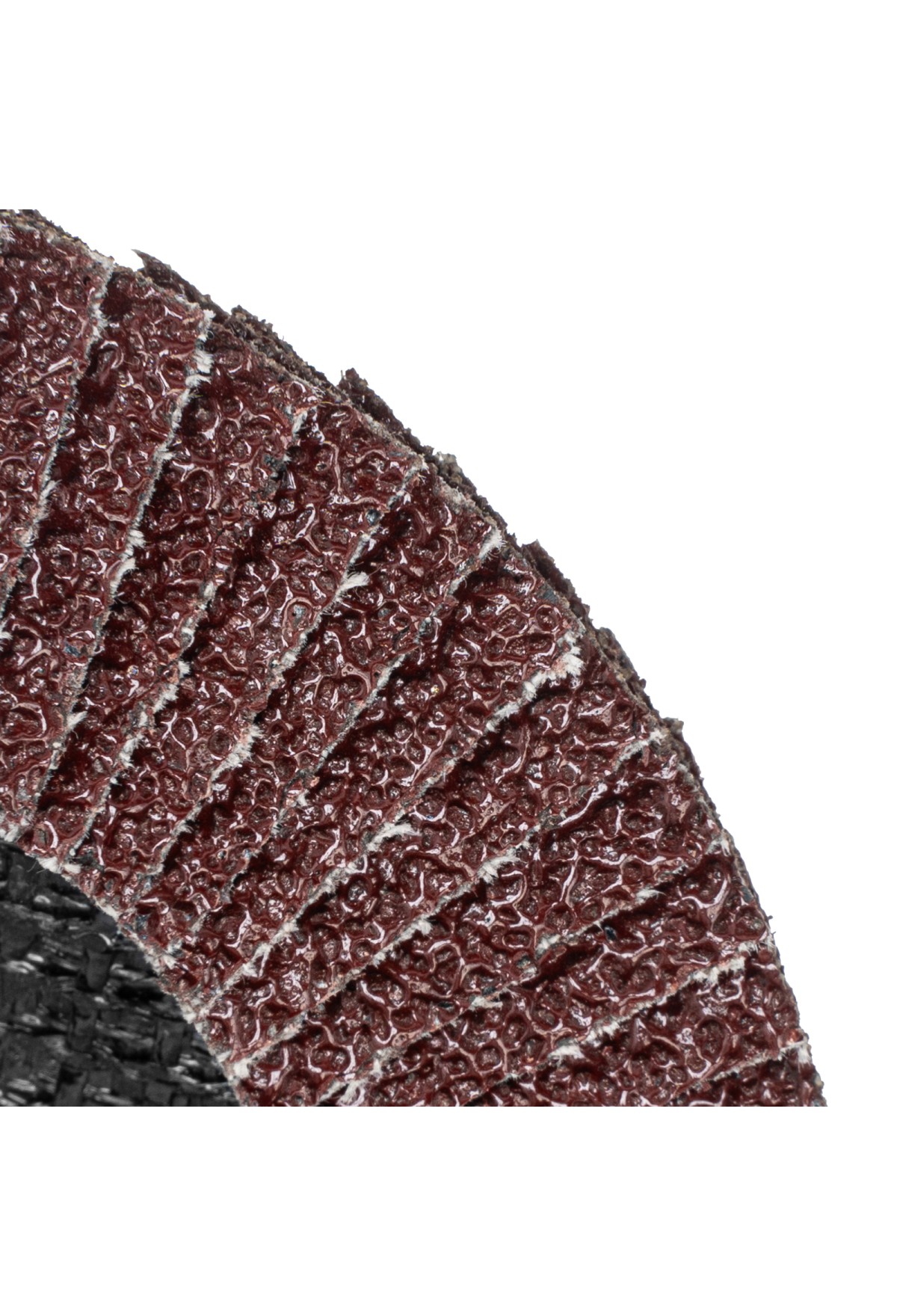 • Лепестки с абразивом зафиксированы на основе с помощью синтетической смолы, что гарантирует надежность всего круга.
