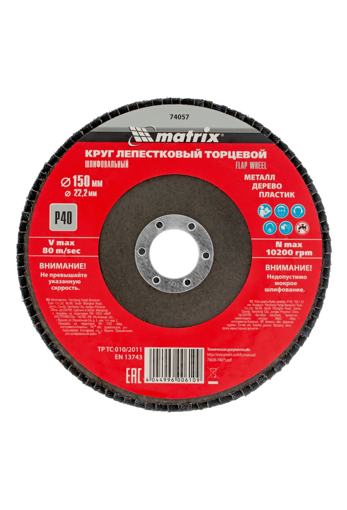 Технические характеристики Круг лепестковый торцевой, P 40, 150 х 22.2 мм Matrix