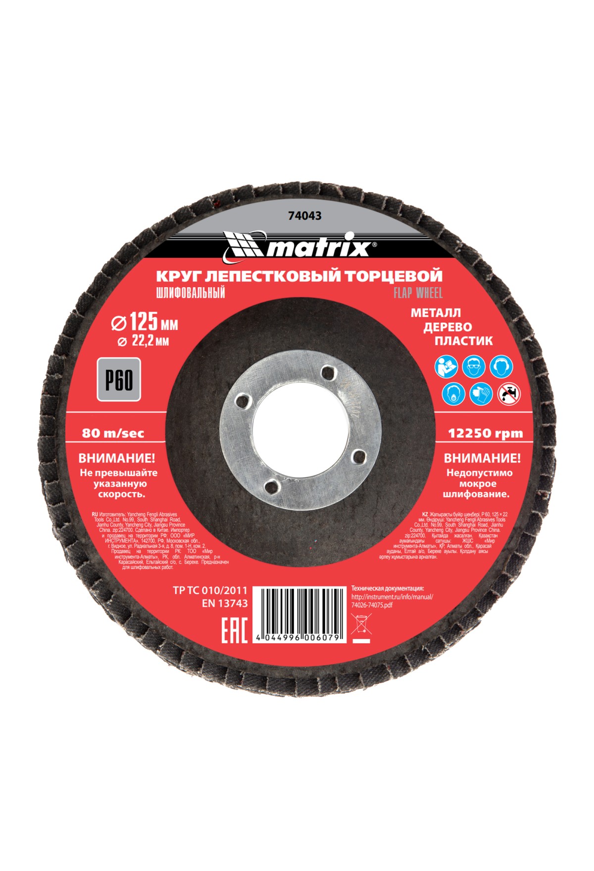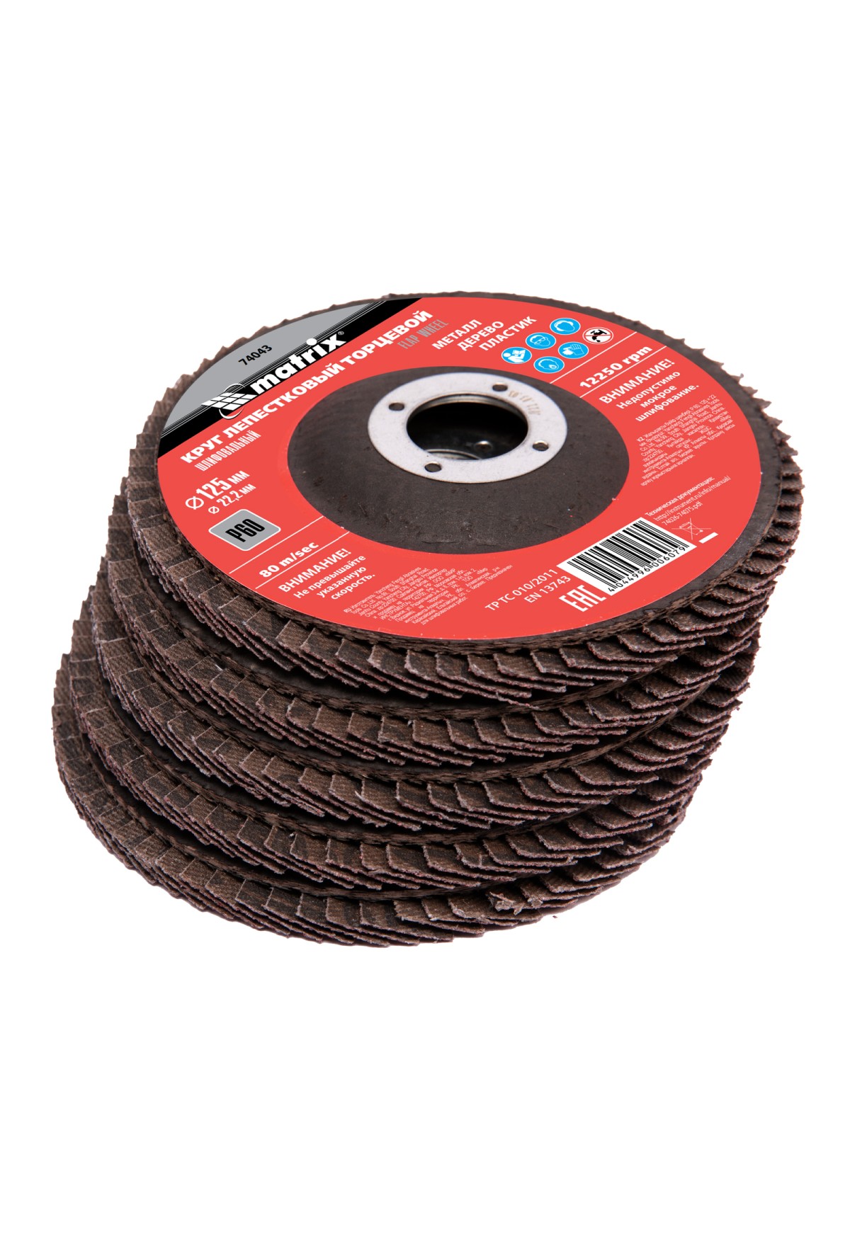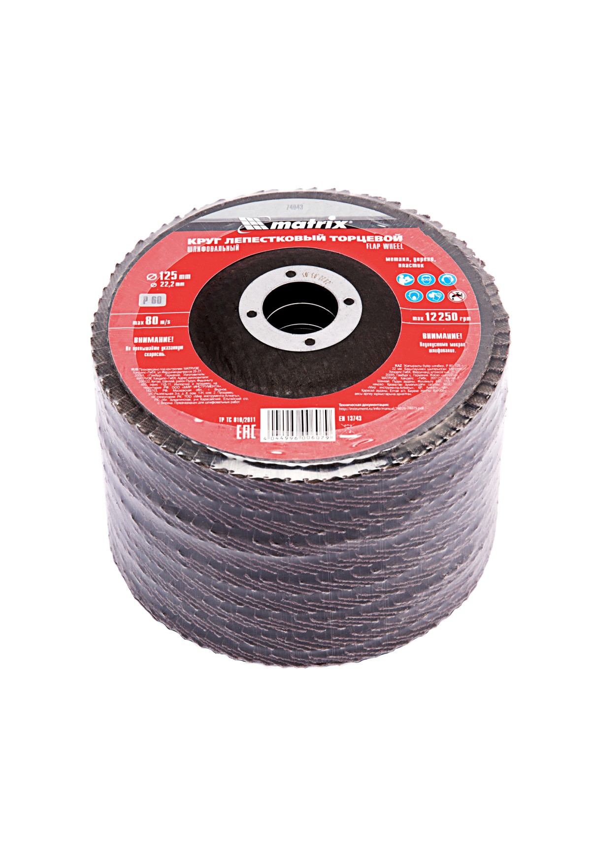 Круг лепестковый торцевой Matrix 74043 зернистостью Р60, 125 х 22,2 мм, является универсальным, поэтому может быть использован для грубой (черновой) обработки практически любых поверхностей: деревянных, металлических, пластмассовых. Совместим с углошлифовальными машинами, имеющими посадочный диаметр 22,2 мм. Круг эффективен для удаления дефектов с поверхностей, зачистки сварных швов, снятия толстого слоя ЛКМ, ржавчины и т.д.
