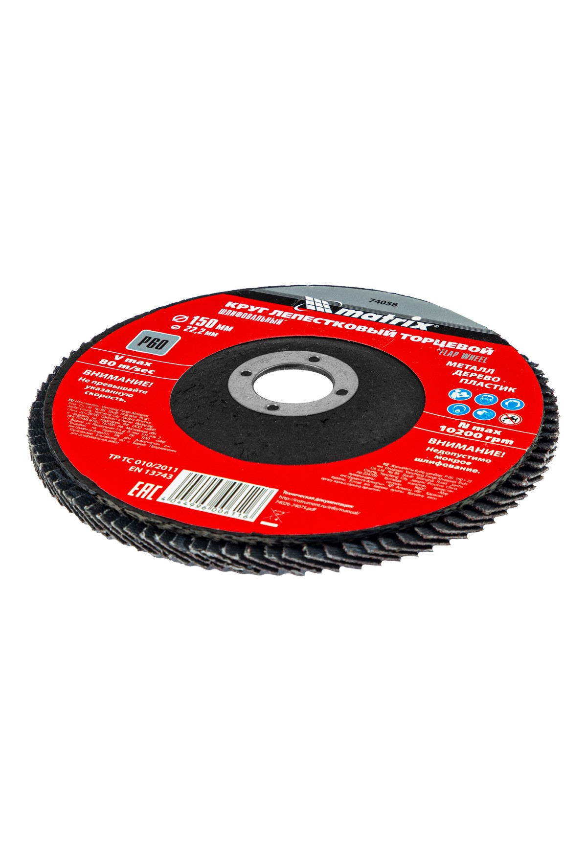На складе Код товара: VR6-74057 Круг лепестковый торцевой, P 40, 150 х 22.2 мм Matrix
