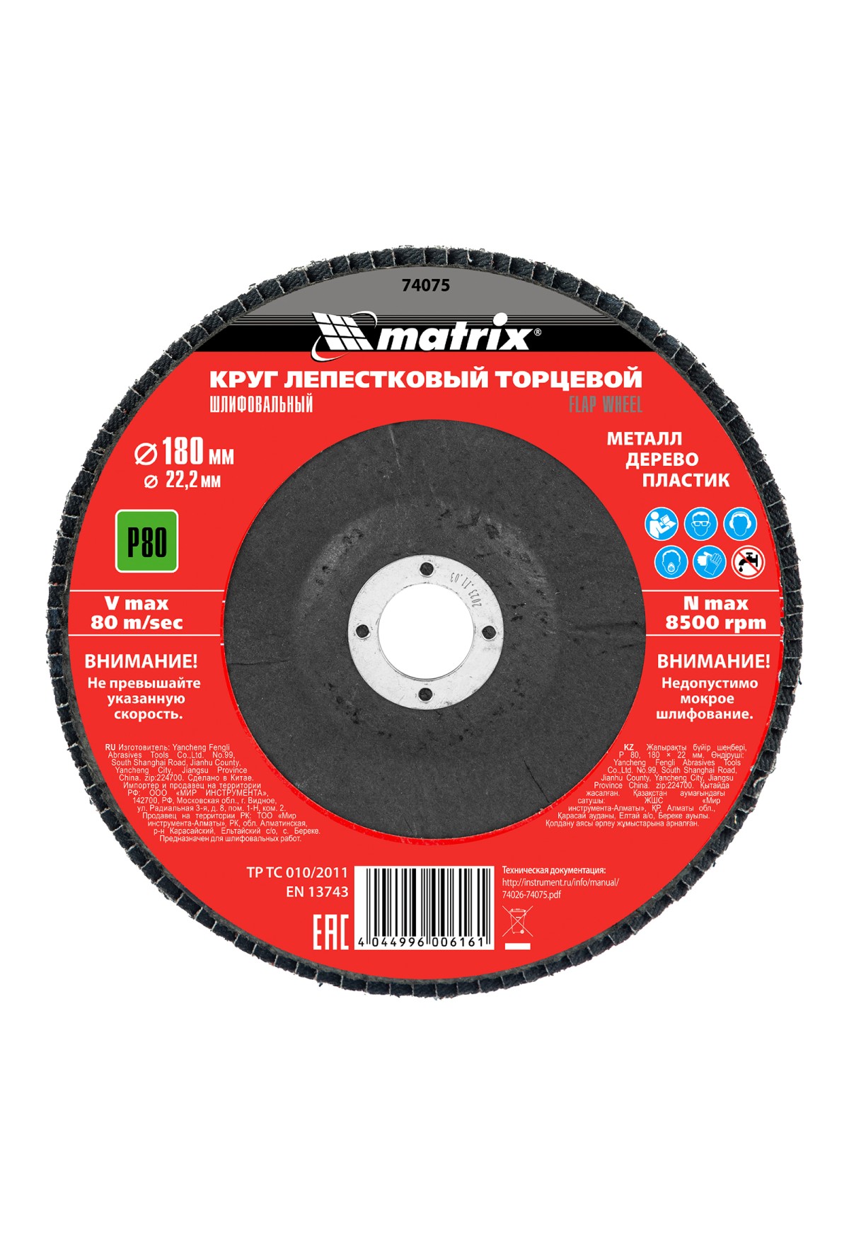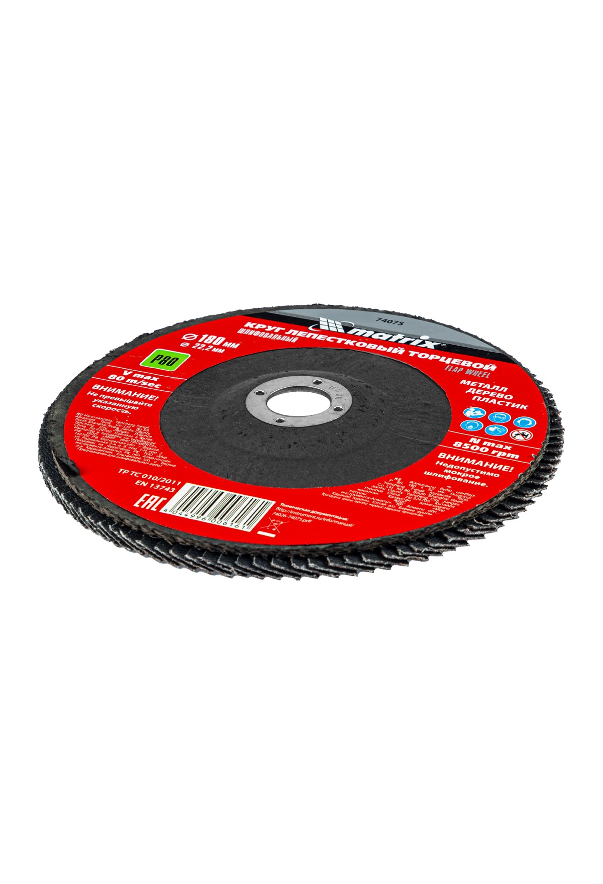 Технические характеристики Круг лепестковый торцевой, P 80, 180 х 22.2 мм Matrix