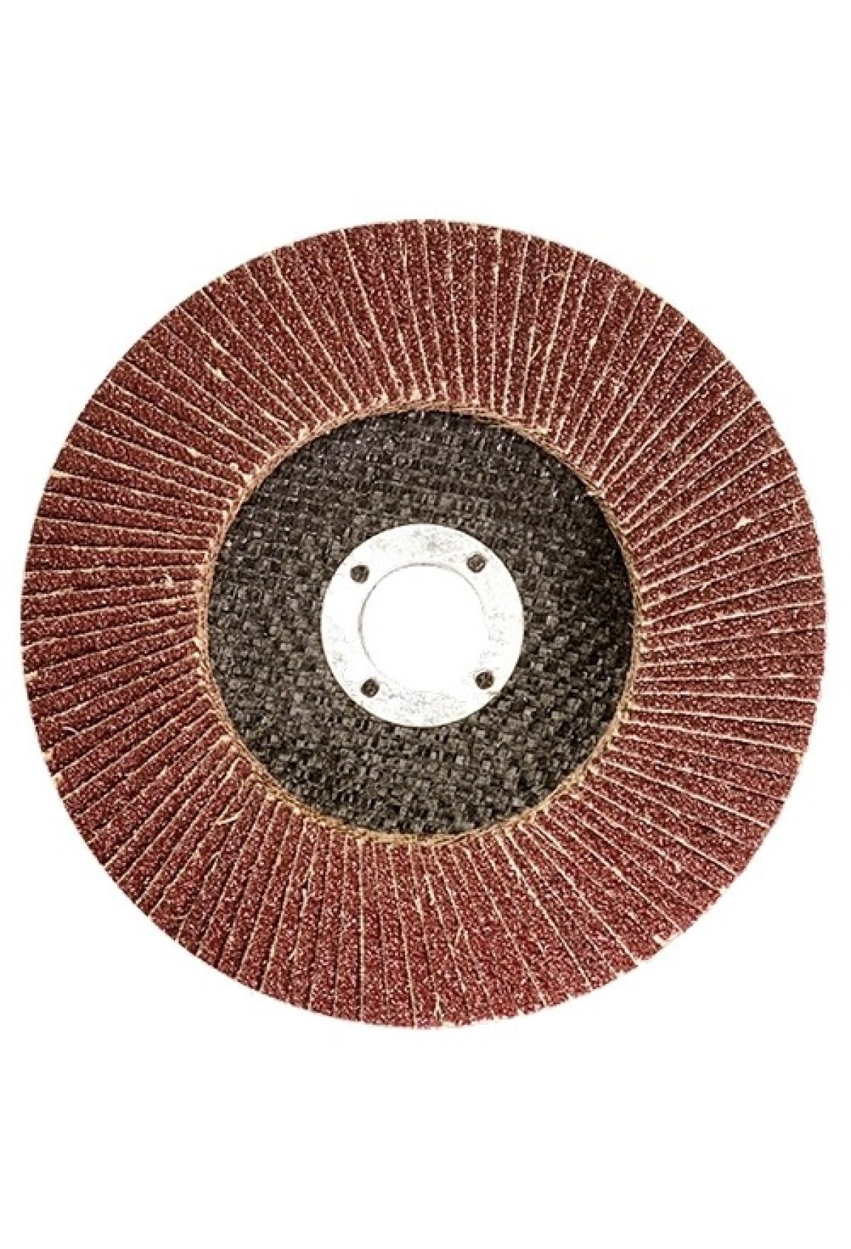 Круг лепестковый торцевой БАЗ КЛТ-1 74010 зернистостью Р100 (12Н), 115 х 22,2 мм, устанавливается в качестве оснастки на фланец УШМ с диаметром посадочного отверстия 22,2 мм. Он используется для чистовой обработки, торцевого и плоского шлифования древесины, металла, пластика. С помощью круга можно зачистить сварные швы, обработать заусенцы после резки, удалить налет ржавчины, лак или краску и т.д.