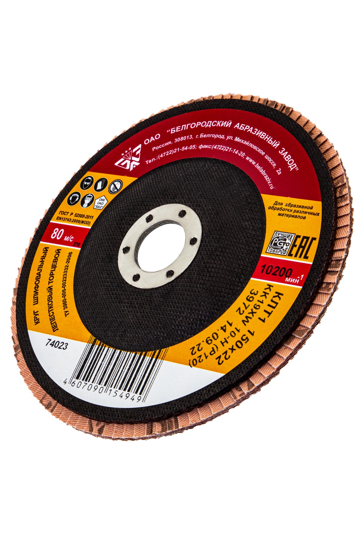 Круг лепестковый торцевой КЛТ-1, зернистость Р 120(10Н), 150 х 22.2 мм,