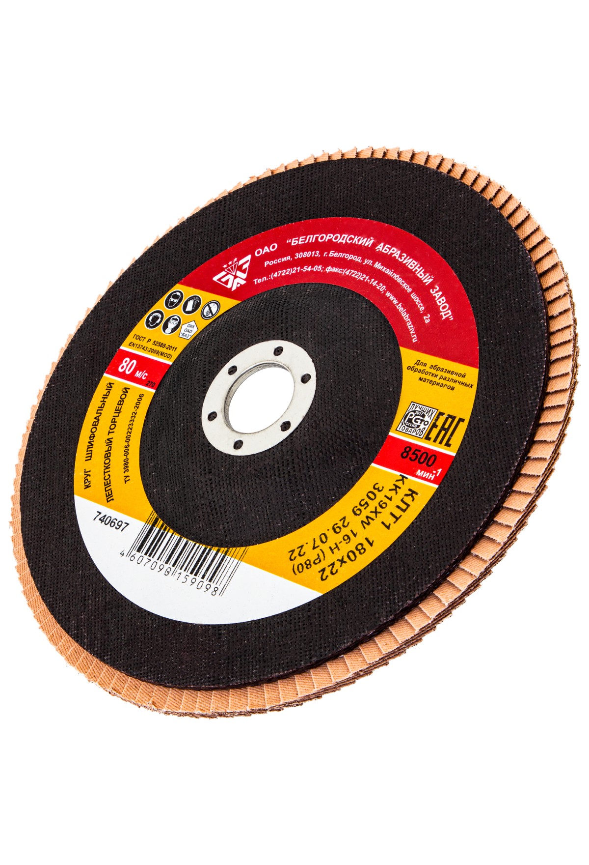 Круг лепестковый торцевой КЛТ-1 740697 зернистостью Р80, 180 х 22,2 мм, устанавливается в качестве оснастки на фланец УШМ с диаметром посадочного отверстия 22,2 мм. Он используется для промежуточной обработки, торцевого и плоского шлифования древесины, металла, пластика. С помощью круга можно зачистить сварные швы, острые углы после резки, удалить заусенцы, толстый слой ржавчины и краски, снять фаски и т.д.