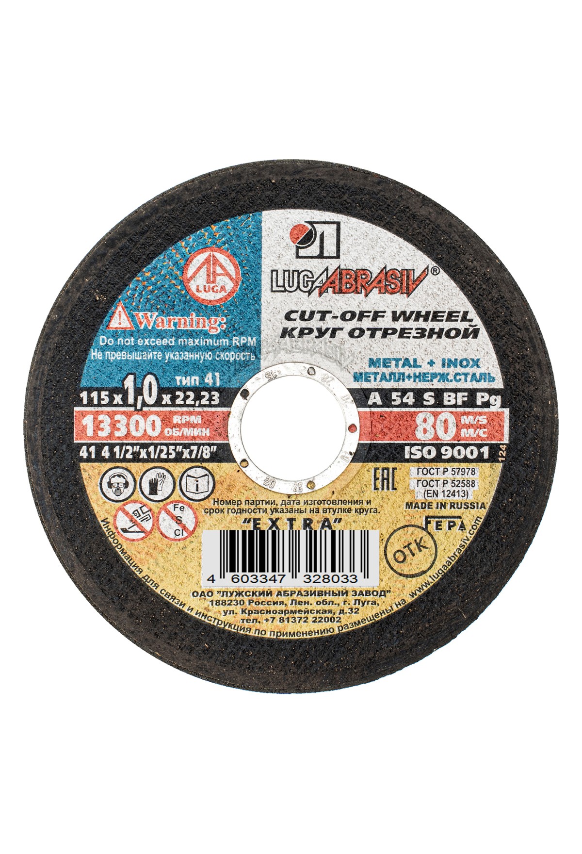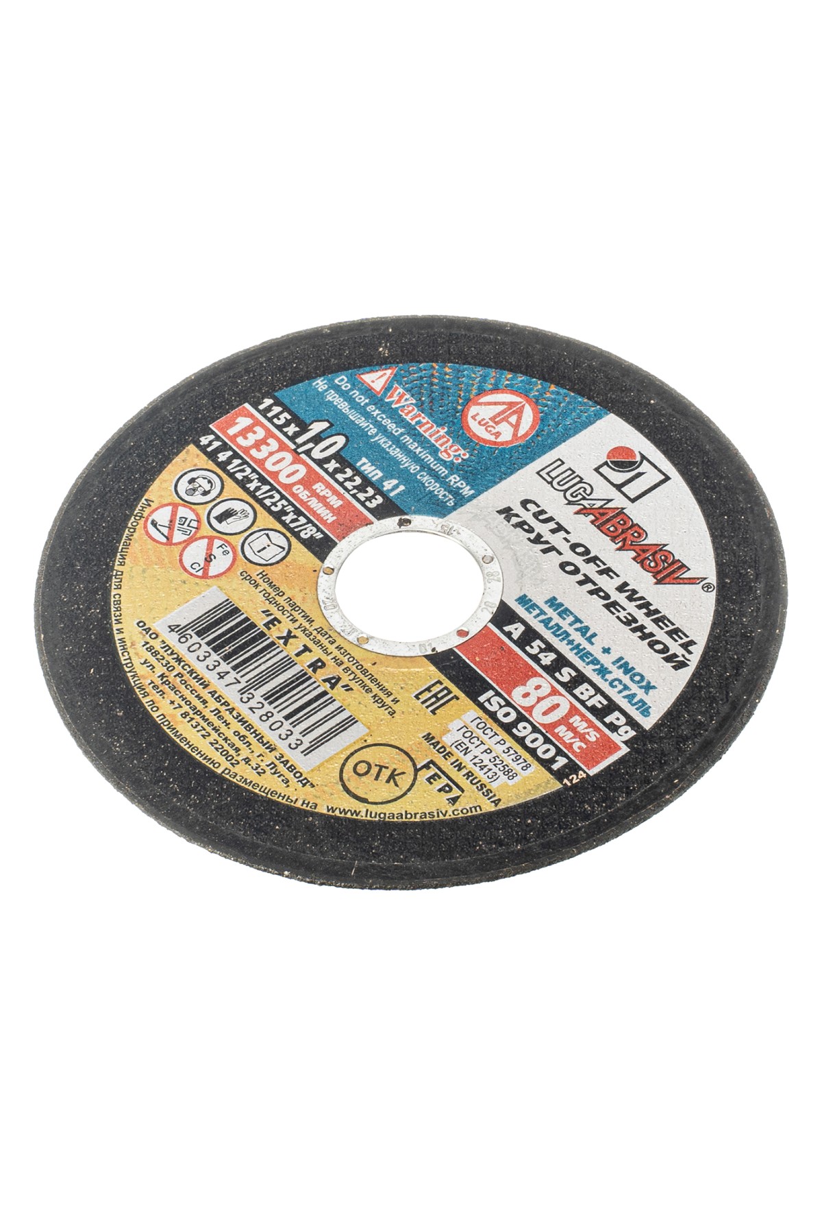 Круг отрезной по металлу, 115 х 1.0 х 22 мм "Луга" Россия